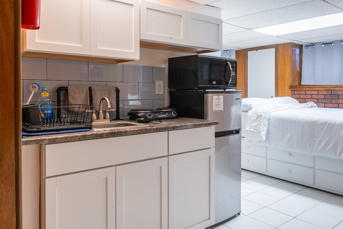 A quaint, stylish home in historic Mount Holly, walking distance from downtown pubs, museums and shops. Pet friendly with ample street parking, fully functional kitchen, full size refrigerator with ice maker, private bathroom (separate toilet and shower). Semi-private laundry / utility room, only used by owners to access the garage. Broadband WiFi included as well as a 65" LED TV with a wide range of streaming apps. A quaint patio area in the front yard invites guests to enjoy the weather.
