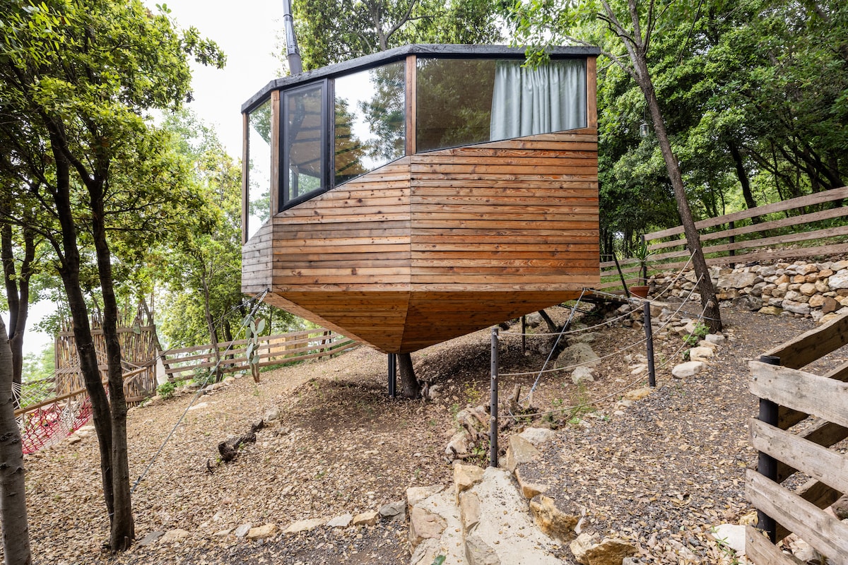 Nhà trên cây ấm cúng, thủ công cho hai người với tầm nhìn toàn cảnh, bồn tắm nước nóng ngoài trời riêng và máy chiếu thông minh với Netflix. Có giường queen, phòng tắm đầy đủ, bếp nhỏ, BBQ, lò sưởi, võng, trò chơi trên bàn và không khí trên núi. Một trong ba căn nhà trên cây Sevenoaks trên cùng một khu đất — hoàn hảo cho các cặp đôi hoặc bạn bè đặt phòng cùng nhau. Bữa sáng tùy chọn, đĩa rượu/phô mai và dịch vụ giao hàng có sẵn. Một khu rừng yên bình, chỉ cách Beirut 40 phút.