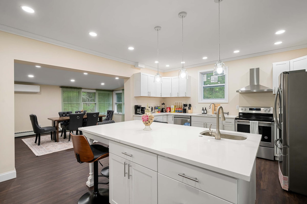 Tận hưởng một ngôi nhà tuyệt vời trên 7 mẫu Anh với mọi tiện nghi bạn có thể nghĩ đến trong một thị trấn tuyệt vời chỉ cách bất cứ nơi nào ở NYC 90 phút. Gần khu trượt tuyết(15 phút đến Mountain Creek hoặc Mount Peter) đi bộ đường dài, trang trại, nhà máy rượu vang, nhà máy bia, công viên giải trí, rạp chiếu phim lái xe và nhiều hơn nữa! Bạn chọn khám phá thị trấn địa phương hoặc ở nhà và tận hưởng hồ bơi nước nóng, sân chơi hoặc tổ chức bữa tối trong phòng ăn lớn của chúng tôi. Số giấy phép P26-0068