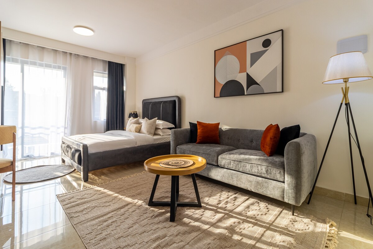 Khám phá sự sang trọng trong căn hộ Airbnb 2 phòng ngủ tuyệt đẹp này với phòng tắm khép kín rộng rãi. Ẩn mình trong khu dân cư có cổng của The Alma by Cytonn Ruaka, Nairobi, tận hưởng an ninh 24/24 với CCTV và hai chỗ đỗ xe miễn phí. Nằm gần Two Rivers Mall, Village Market, UNEP, Đại sứ quán Liên Hợp Quốc và Câu lạc bộ golf Muthaiga, nơi đây hoàn hảo cho công việc và giải trí. 45 phút từ sân bay (JKIA) Wifi miễn phí Kênh Netflix & TCL