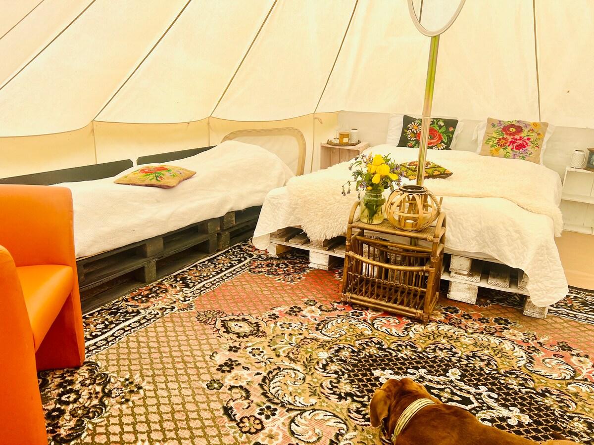 A private glamping tent in a beautiful Muhu forest. There is a queen size (160cm) bed for a good nights sleep in fresh air surrounded by nature and birdsong. There is electricity for charging your phone and for mood lighting. Wi-Fi is at the main house which is 100m from the tent. There is an eco-friendly dry toilet close to the tent and shower is at the sauna house 100m. Sauna and hottub are extra charge (sauna 30€/3 hours, hottub 50€). Come enjoy camping in a different way!