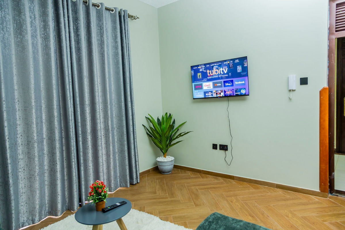 This Aesthetic One Bedroom Apartment is located in Naalya Estate near Quality Supermarket. It’s a few minutes drive to the northern bypass connection leading you to the Airport via Express Highway and close to Acacia Mall, nice restaurants and bars nearby. There are also a number of alternative routes to the city center. The amenities are; - All kitchen appliances eg. Rice cooker, Coffee machine, Blender - Fast Speed WI-FI - 55inch Samsung smart tv - Samsung sound bar - Washing Machine