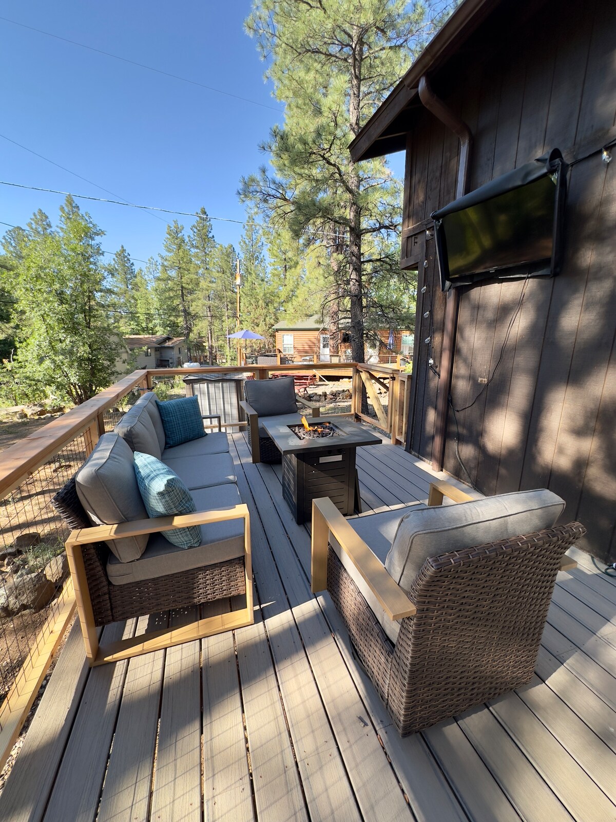 Trải nghiệm miền Bắc Arizona theo cách hoàn toàn mới trong cabin được thiết kế tỉ mỉ của chúng tôi, nằm ở trung tâm Công viên Munds. Được bao quanh bởi những cây thông trải dài, không gian độc đáo của chúng tôi tự hào về những chi tiết bất ngờ và tiện nghi sang trọng mà bạn sẽ không tìm thấy ở các chỗ ở cho thuê khác. Được thiết kế để giải trí cả bên trong và bên ngoài, mọi không gian đều đẹp và tiện dụng, được trang bị đầy đủ và sẵn sàng để bạn tạo ra những kỷ niệm sẽ tồn tại suốt đời. STR-23-0310
