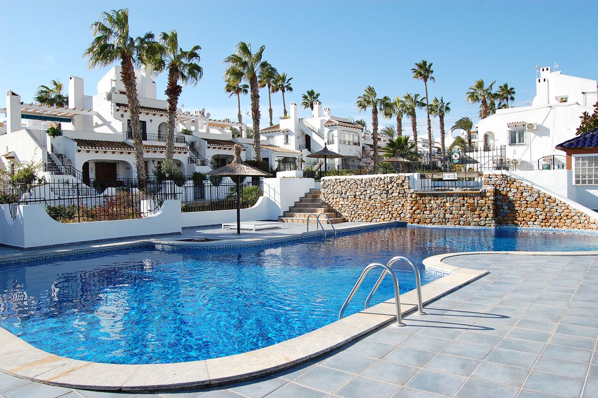 Bungalow tự nhận phòng riêng này gần Sân golf Villamartin có 2 phòng ngủ và 1 phòng tắm, bếp đầy đủ tiện nghi và phòng tắm nắng trên tầng thượng tuyệt đẹp với khu vực ăn uống và BBQ. Bungalow mới được cải tạo, bao gồm điều hòa không khí hoàn toàn mới, thiết bị nhà bếp, giường, nệm và đồ nội thất. Có hồ bơi cộng đồng riêng (1 phút đi bộ), sân golf Villamartin (2 phút lái xe) và một trong những trung tâm mua sắm lớn nhất Zenia Boulevard cho bất cứ điều gì bạn cần (5 phút lái xe).