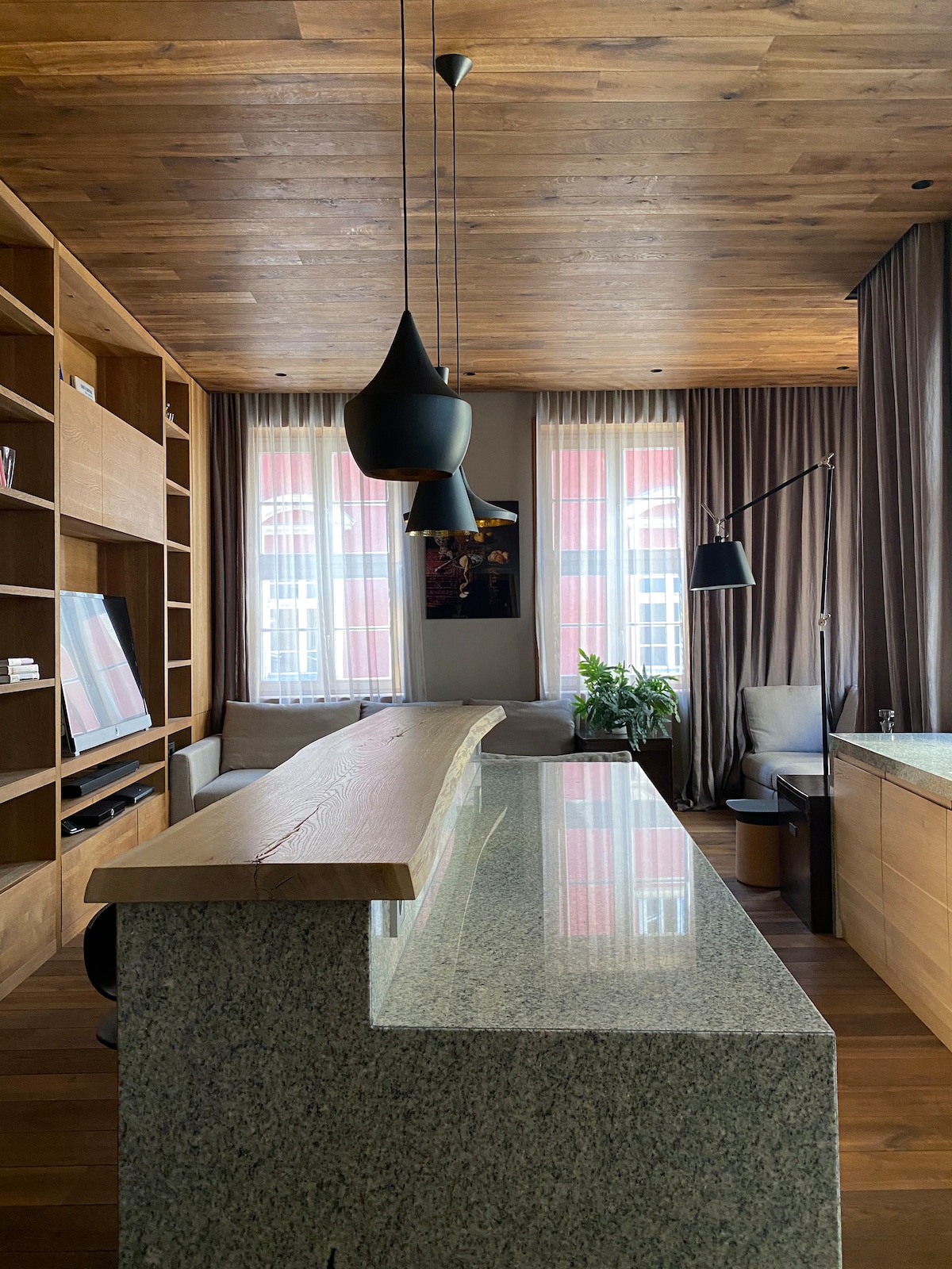 Căn hộ nằm trong khu vực yên tĩnh của khu dân cư. Tầng cuối cùng của tòa nhà và sự tách biệt với những người hàng xóm khác thông qua vị trí cao điểm có nghĩa là sự hiện diện của các cư dân khác của khu phức hợp không được cảm nhận. Hai phòng riêng biệt, một cho mỗi phòng ngủ, phòng còn lại là không gian chung với một chiếc ghế sofa cũng có thể làm khu vực ngủ thứ hai. Một nhà bếp riêng biệt kết nối với hành lang cho phép một giấc ngủ ngon vào ban đêm.