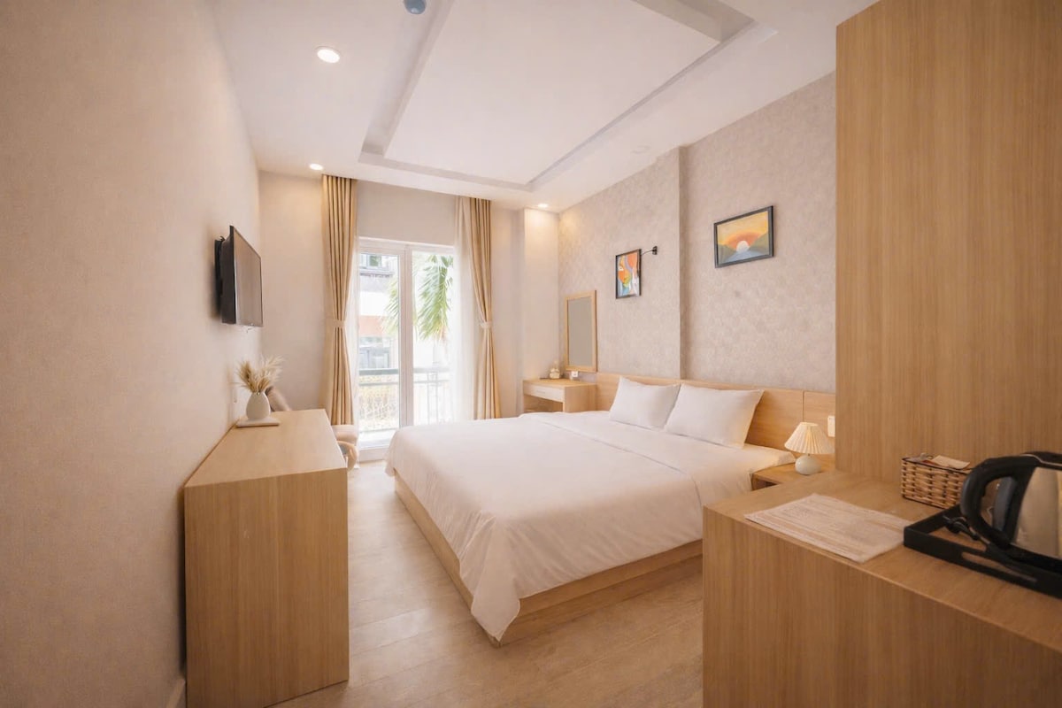 Bright studio with a private balcony - Perfect for couples seeking comfort and simplicity. A welcoming studio featuring warm lighting, modern interiors, and a private balcony to enjoy fresh air. Ideal for guests who want a cozy, practical space near My Khe Beach. Nestled just a 4‑minute walk from My Khe Beach, Mixay Boutique offers a peaceful blend of modern comfort and natural simplicity. Enjoy bright studios, warm wooden touches, and relaxing garden corners throughout the property.