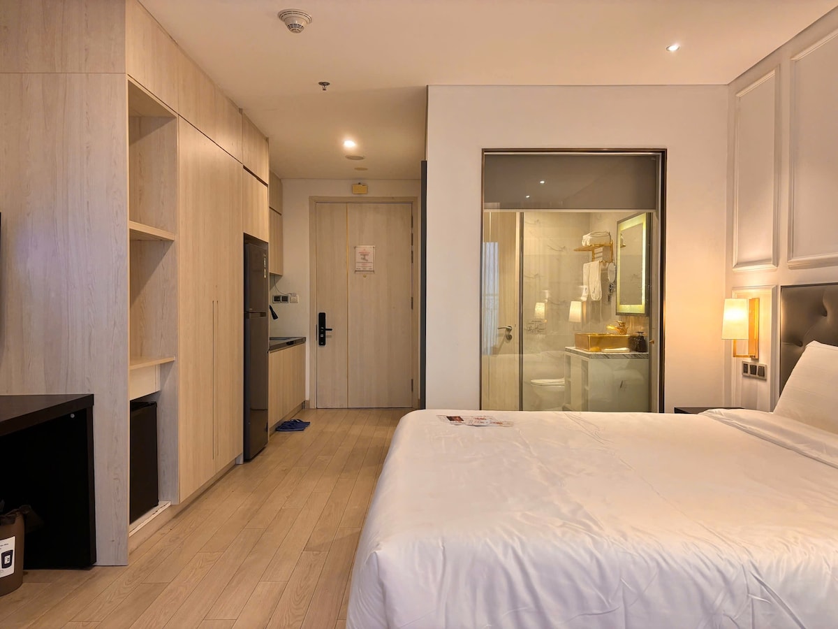 This is a room that the owner has purchased, so we have the right to set the price. The price we offer is only half the price of a 5-star hotel but the quality is the same. - Room has private balcony and beautiful bay view. Area 37m2. - The room has a private bathroom with a standing bathtub - Bed is 1m8x2m - Provide towels and toiletries *** If this room is full, just book other rooms which you can find in my profile. It's same.