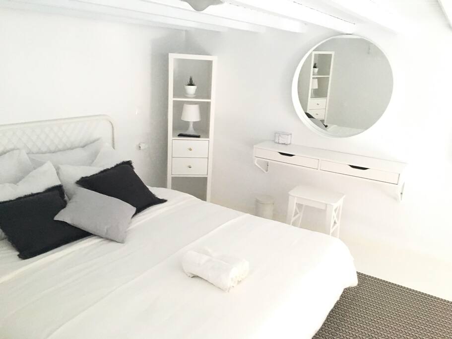Khi bạn bước vào phòng Cycladic của chúng tôi, bạn được chào đón bởi một bầu không khí yên tĩnh tuyệt vời. Thiết kế phản ánh bản chất tinh túy của Cyclades, với kiến trúc quét vôi trắng và thẩm mỹ tối giản pha trộn liền mạch với vẻ đẹp tự nhiên của môi trường xung quanh. Mỗi chi tiết đã được chế tác tỉ mỉ để tạo ra một khu bảo tồn hài hòa cộng với tinh thần của Mykonos.
