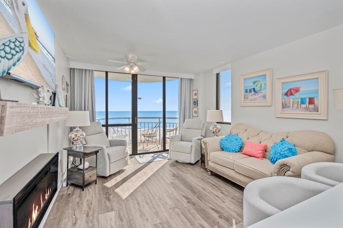 The expansive balcony and spectacular oceanfront view is what makes this stylish condo stand out! The beach is visible from nearly every room in this space & you'll have access to a pool and a cute beach cafe right outside. This is a prime location to enjoy restaurants, get in a lovely walk on the beach, or do nothing at all! When you're not out enjoying the sun or all that Myrtle Beach has to offer, you'll find the condo itself to be cozy, beautifully decorated, and super comfortable.