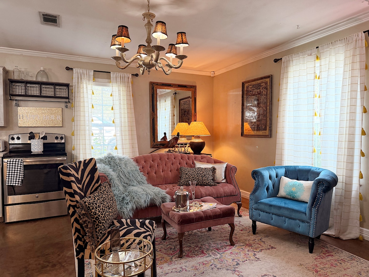 Hãy tham gia cùng chúng tôi tại nơi nghỉ dưỡng màu hồng được sửa sang lại tùy chỉnh của chúng tôi gần trung tâm thành phố Nacogdoches. Hoàn hảo cho khách đi công tác, gia đình đến thăm Đại học bang Stephen F. Austin hoặc bất kỳ lễ hội khu vực tuyệt vời nào của chúng tôi. Ngôi nhà hai giường một phòng tắm này là công việc của chúng tôi về tình yêu. Chúng tôi là người dân địa phương Nacogdoches, những người thích chia sẻ văn hóa của cộng đồng chúng tôi.