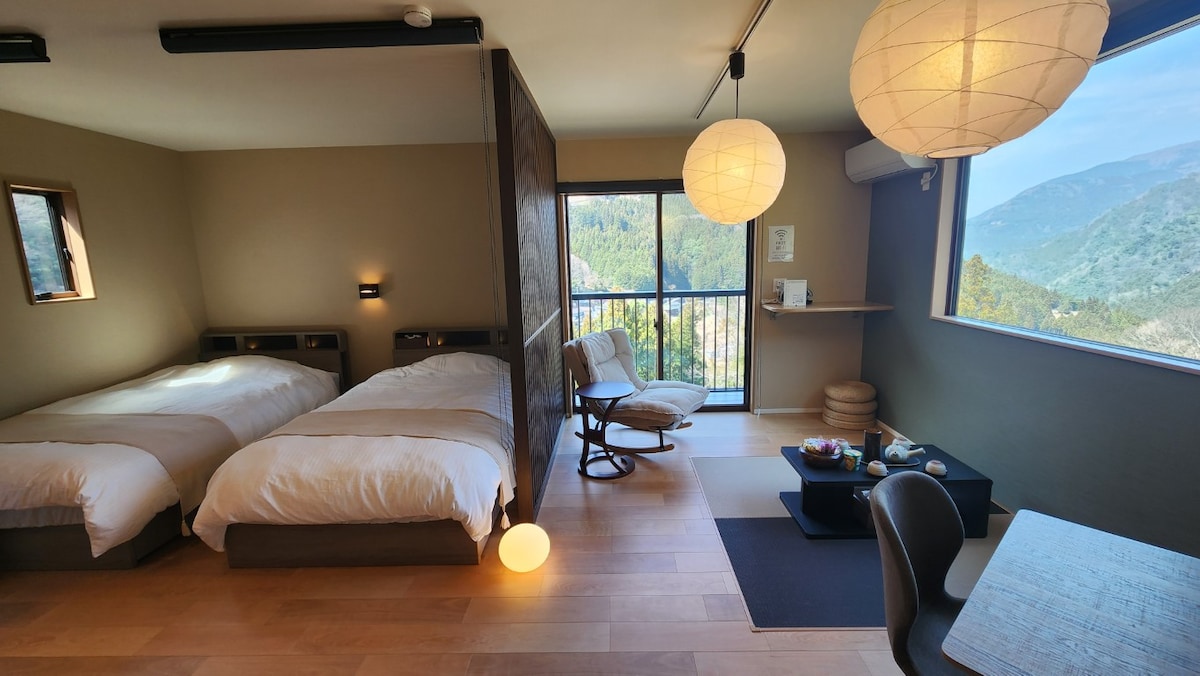 Riviera Iya Valley is ideally located just a 7-minute walk from JR Oboke Station. At the gateway to Iya, one of Japan’s Three Great Hidden Regions, the property offers sweeping views of a gorge that transforms with the seasons. Experience the beauty of all four seasons. The area is steeped in history and culture, offering a calm and relaxing atmosphere. Discover a unique stay where nature, history, and activities come together to create an unforgettable experience.