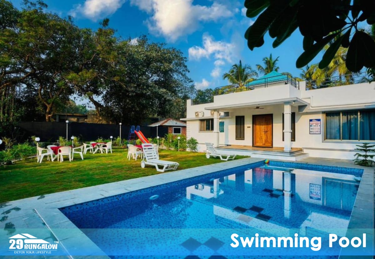 Thoát khỏi biệt thự riêng 5BHK theo chủ đề Bali tuyệt đẹp của chúng tôi, hoàn hảo cho các gia đình hoặc nhóm. Tận hưởng nội thất thanh lịch, hồ bơi riêng, bãi cỏ tươi tốt, chỗ ngồi bên hồ bơi đầy phong cách và vòm thanh bình tạo cảm giác như khu nghỉ dưỡng. Tất cả 5 phòng ngủ đều rộng rãi với nhà vệ sinh kèm theo, điều hòa không khí và tiện nghi hiện đại. Thư giãn trong nhà hoặc thư giãn ngoài trời với một cuốn sách và đồ uống. Với kiến trúc đẹp và môi trường xung quanh yên bình, đây là nơi nghỉ ngơi nhiệt đới hoàn hảo của bạn. Chỉ cách bãi biển vài phút- kỳ nghỉ trong mơ của bạn đang chờ bạn!