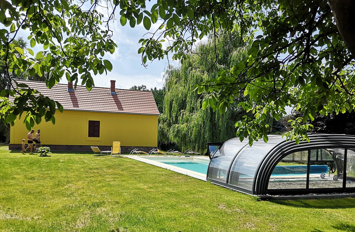 Nhà khách của chúng tôi nằm ngay trung tâm Zalai Hills ở Hungary. 600 ngôi làng khao khát được kết nối với hai bên "Budai" và "Pesti" của Horn Creek, hai bãi biển được kết nối bằng những cây cầu nhỏ. Trang trại của chúng tôi được bao quanh bởi cùng một con lạch nhỏ từ phía bắc. Bên này không có hàng rào. Được xây dựng vào năm 1948, chúng tôi đã mua ngôi nhà từ góa phụ của Németh Vendel, bà Manci, góa phụ của Németh Vendel. Chúng tôi đã không thay đổi bên ngoài tòa nhà, và bên trong, chúng tôi đã cố gắng tạo ra một sự pha trộn trang nhã giữa hiện đại và cũ kỹ.