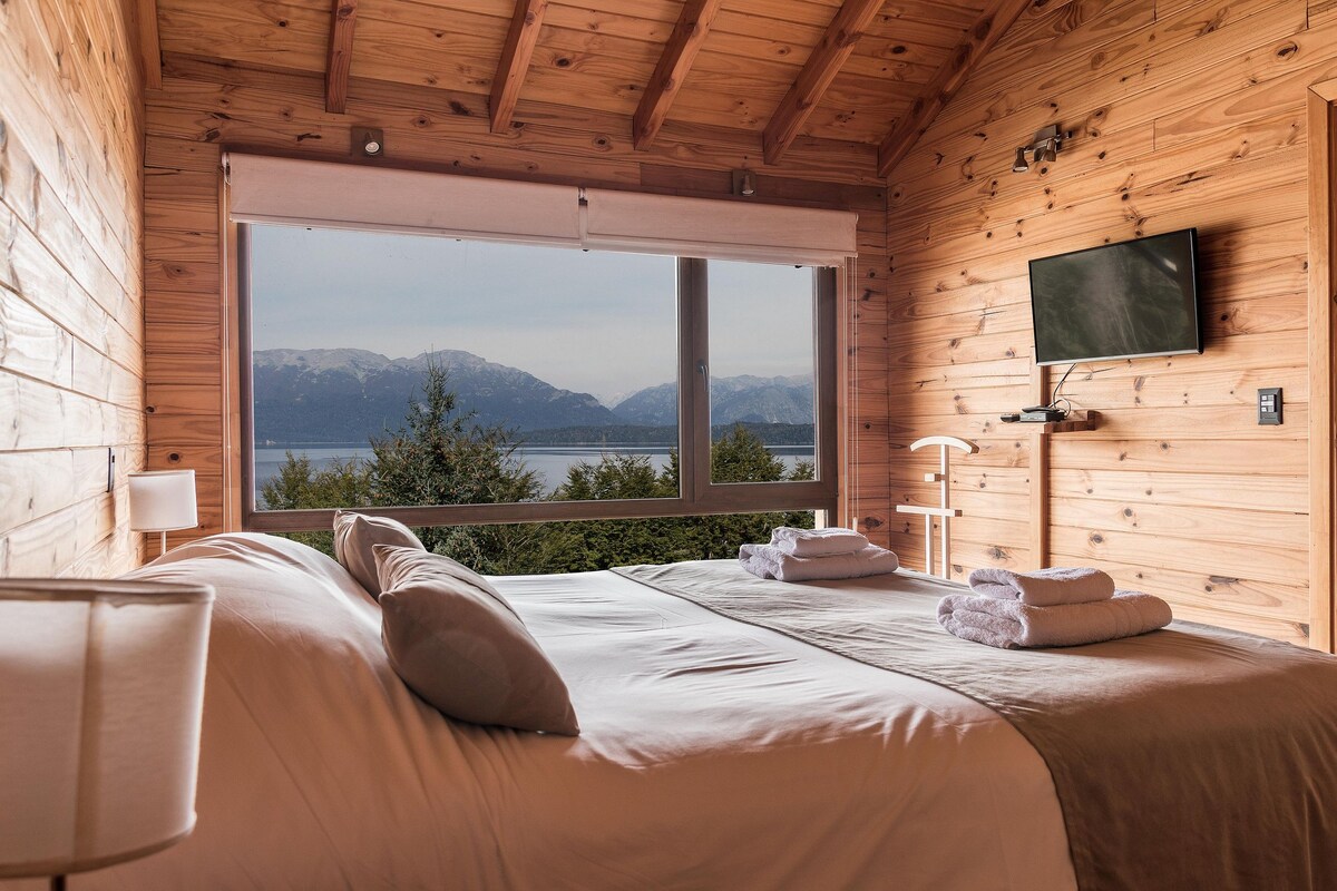 Atardeceres del Lago: Khu nghỉ dưỡng Patagonia với tầm nhìn thơ mộng ra Hồ Nahuel Huapi. Thức dậy với những bức tranh toàn cảnh đáng kinh ngạc và tận hưởng hoàng hôn độc đáo từ sân thượng của bạn. Hồ bơi nước nóng có tầm nhìn ra hồ. Các căn hộ được trang bị nhà bếp, lò vi sóng, TV và phòng tắm riêng. Bếp nướng cá nhân. Phòng chơi với TV, bóng ném và trò chơi. Lý tưởng cho các cặp đôi trong một khung cảnh yên tĩnh và thanh bình. Gần Đảo Victoria và Đèo Cardenal Samore. Dễ dàng đến từ Bariloche (85 km). Lý tưởng để trượt tuyết và phiêu lưu quanh năm.