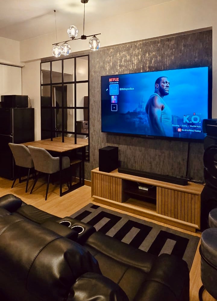 Liam Suite là kỳ nghỉ trong mơ của bạn với trải nghiệm Rạp chiếu phim độc quyền của Câu lạc bộ Giám đốc. Tận hưởng sự thoải mái ấm cúng và trải nghiệm giải trí vượt trội với TV Google 4K 75 inch, PS4 Pro, âm thanh vòm Samsung và ghế tựa điện như rạp chiếu phim – tất cả trong một studio đầy phong cách. CỘNG VỚI một máy hát karaoke và loa SONY với micrô không dây JBL cho đêm hát của bạn. Hoàn hảo cho các cặp đôi, nhóm bạn hoặc gia đình! 📍 Nằm bên cạnh SM City Trece, gần Cavite Capitol, văn phòng Chính phủ và chợ công cộng và phương tiện giao thông.