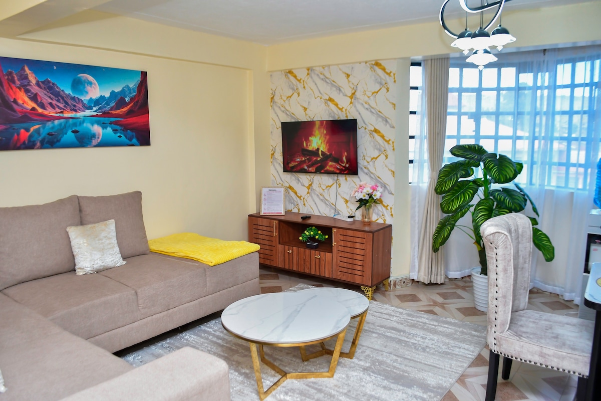 NƠI NGHỈ DƯỠNG NAIVASHA ✨ Thoát khỏi sự thoải mái và phong cách ngay trung tâm Naivasha! Căn hộ 1 phòng ngủ ấm cúng của tôi là nơi nghỉ dưỡng hoàn hảo của bạn – nơi những rung cảm hiện đại gặp gỡ những đêm yên bình. Chìm vào một chiếc giường siêu thoải mái. Duy trì kết nối với Wi-Fi tốc độ cao. Phát trực tuyến, thư giãn hoặc làm việc với TV thông minh và không gian làm việc riêng. Đi bộ đến các trung tâm thương mại, quán cà phê và trung tâm thị trấn gần đó trong vài phút. Hoàn hảo cho các chuyến công tác, cặp đôi, khách đi một mình hoặc người du mục kỹ thuật số. Phong cách. Yên tĩnh. Trung tâm. Bạn sẽ cảm thấy như đang ở nhà mình.