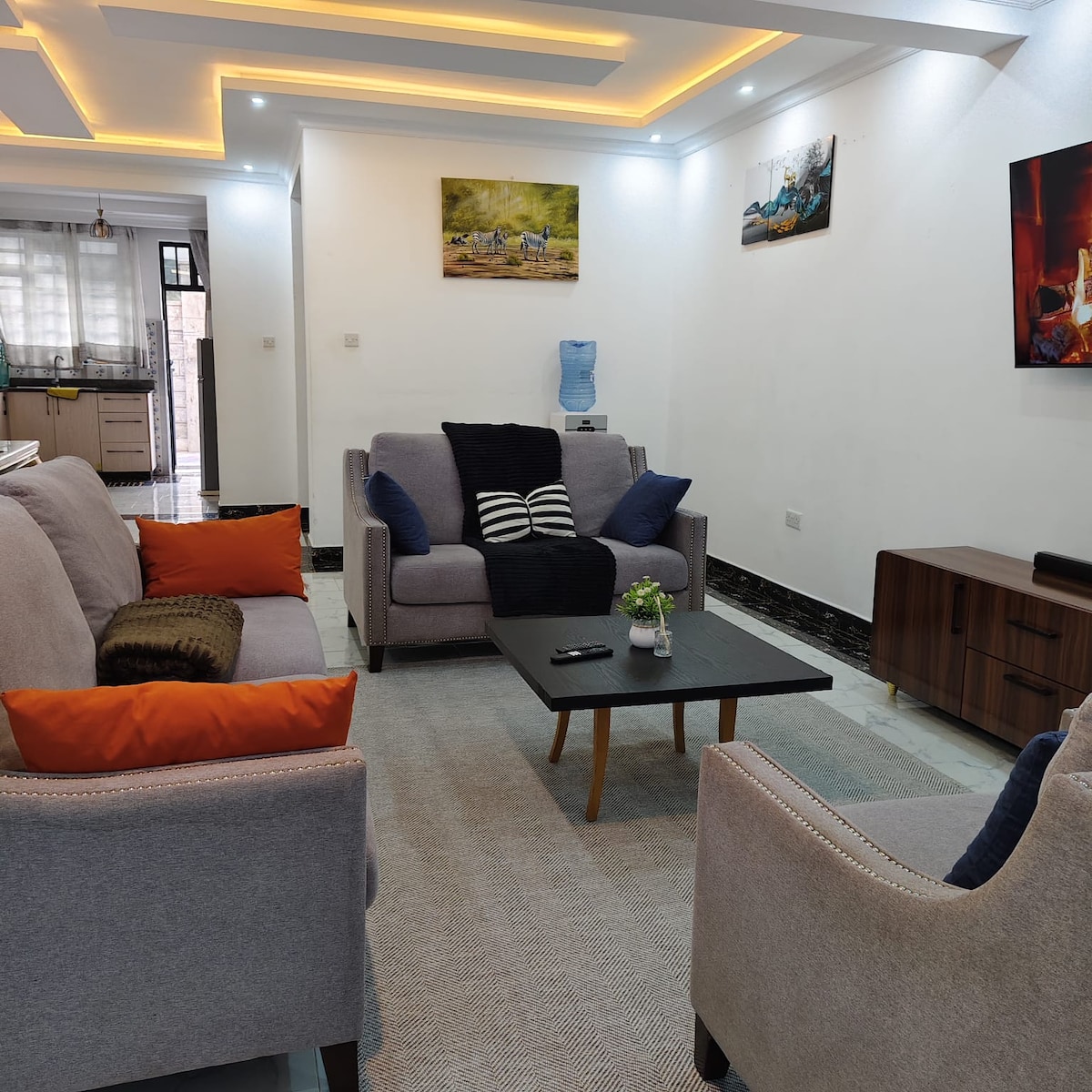 Chào mừng bạn đến với Opal, một căn hộ 2 phòng ngủ hiện đại ở Naivasha hoàn hảo cho gia đình, bạn bè hoặc nhóm nhỏ. Phòng tắm khép kín chính và phòng ngủ ấm cúng thứ hai mang lại sự thoải mái và riêng tư, trong khi khu vực sinh hoạt rộng rãi, không gian ăn uống và nhà bếp được trang bị đầy đủ mang lại cảm giác như ở nhà. Khách được sử dụng Wifi miễn phí, nhanh chóng, chỗ đỗ xe miễn phí và dễ dàng đến thị trấn Naivasha và các điểm tham quan. Cho dù là công việc hay giải trí, Opal cung cấp một kỳ nghỉ phong cách và thuận tiện.