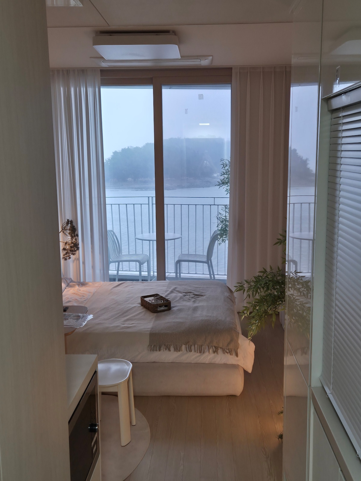 서울에서 가까운 인천 서해 바다의 너른 풍경, 빠듯한 일상 속 잠시 쉼이 필요할 때 마음 가볍게 놀러오세요 :) 늘 깨끗하게 관리하고 있습니다. 바다와 초록 공원이 내려다보이는 고층, 양면 통유리창으로 바라보는 시원한 통창 오션뷰, 넓고 쾌적한 레지던스 대형 복층 원룸 감성 숙소 ▪️인천공항 자동차 15-20분 ▪️인스파이어 아레나, 파라다이스, 을왕리 해수욕장 등 주요 관광지 자동차 25-30분 ▪️구읍뱃터 선착장 2km 자동차 5-7분 ▪️상가 중심 지구, 도보 5분 이내 식당, 카페. 건물 1층 편의점 ▪️넷플릭스 ▪️최대 8인 ▪️이용시간 - 체크인 : 오후 4시 - 체크아웃 : 오전 11시 *얼리체크인/레이트체크아웃은 추가 비용 및 스케줄 조율이 필요하니 사전문의 부탁드립니다. ▪️반려동물 동반 불가 ▪️실내 흡연 절대 금지 ▪️삼겹살 바베큐 불가, 고기/생선/새우 굽기 불가 ▪️주차(1대 무료) - 건물 B1~B4 /주차장-숙소 연결 (2대 이상 추가 비용)