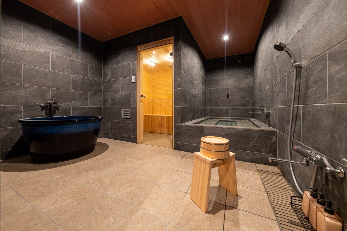 (Gen) Phòng xông hơi riêng, phòng tắm công cộng / Nhà riêng hiện đại phong cách Nhật Bản được bao quanh bởi ánh sáng và cây cối / 5 phòng ngủ / tối đa 26 người