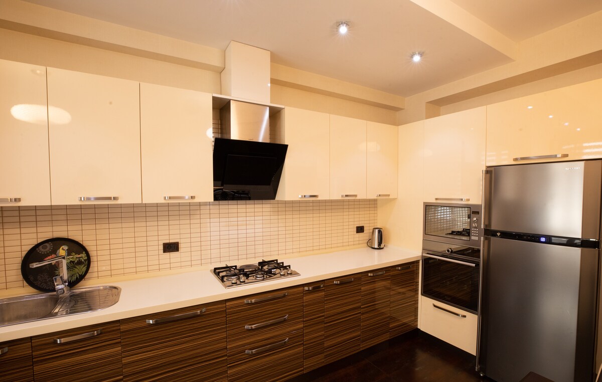 Ở trong căn hộ mới cải tạo của chúng tôi, chỉ cách Quảng trường Fountain (đường Nizami) 5 phút và cách Thành phố cổ (Icherisheher) 7 phút. Hoàn hảo cho du khách muốn khám phá các điểm tham quan hàng đầu của Baku. Các tính năng chính: Vị trí tuyệt vời, gần nhà hàng, quán cà phê và cửa hàng. Phong cách Scandinavia hiện đại với nội thất mới. Ban công riêng cho tầm nhìn thư giãn. Tòa nhà an toàn với an ninh 24/7 và thang máy nhanh. Nhà bếp đầy đủ tiện nghi và Wi-Fi. Rất mong được đón tiếp bạn!