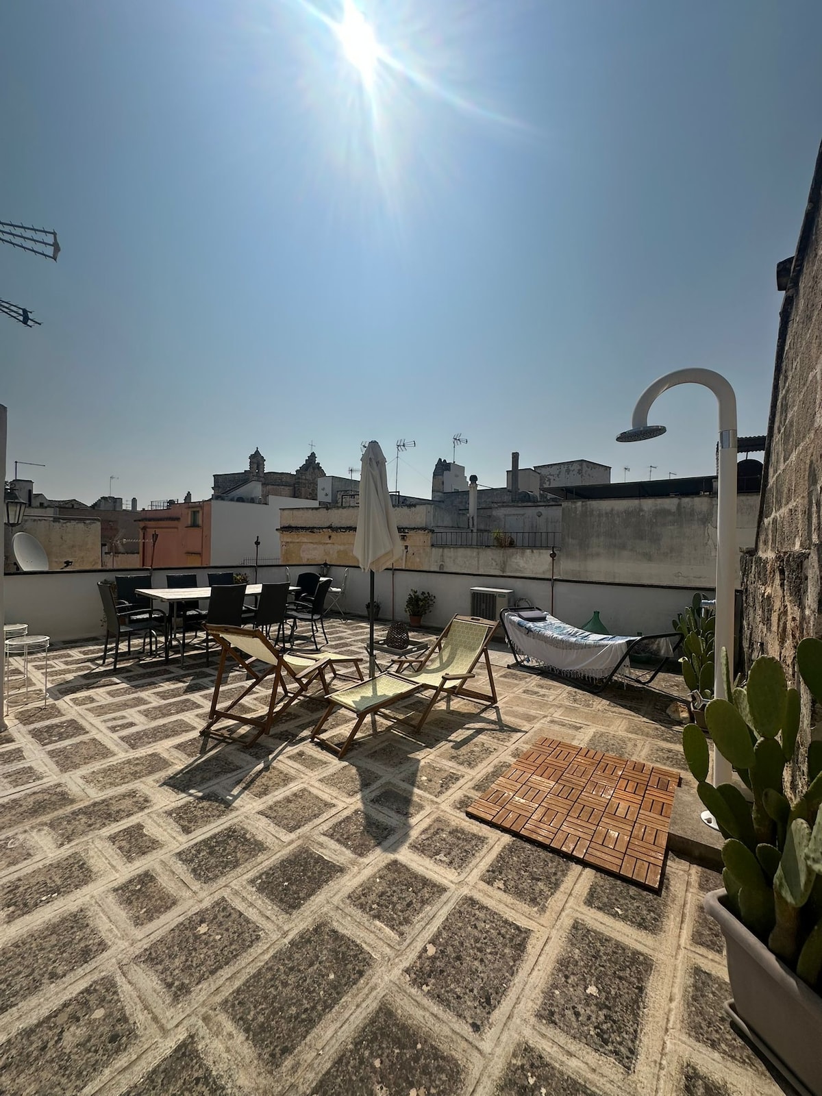 La casa, ristrutturata nel rispetto della sua autenticità, si trova nel cuore del centro storico di Matino, in una delle corti più antiche, a ridosso del Palazzo Marchesale. E' ideale per trascorrere le vostre vacanze in assoluta tranquillità pur stando a pochi km da Gallipoli e dalle spiagge più belle del Salento. Si tratta di un attico con tre terrazze, di cui una panoramica dalla qualle si possono ammirare le case bianche del paese, la campagna salentina e il mare di Gallipoli con il faro.