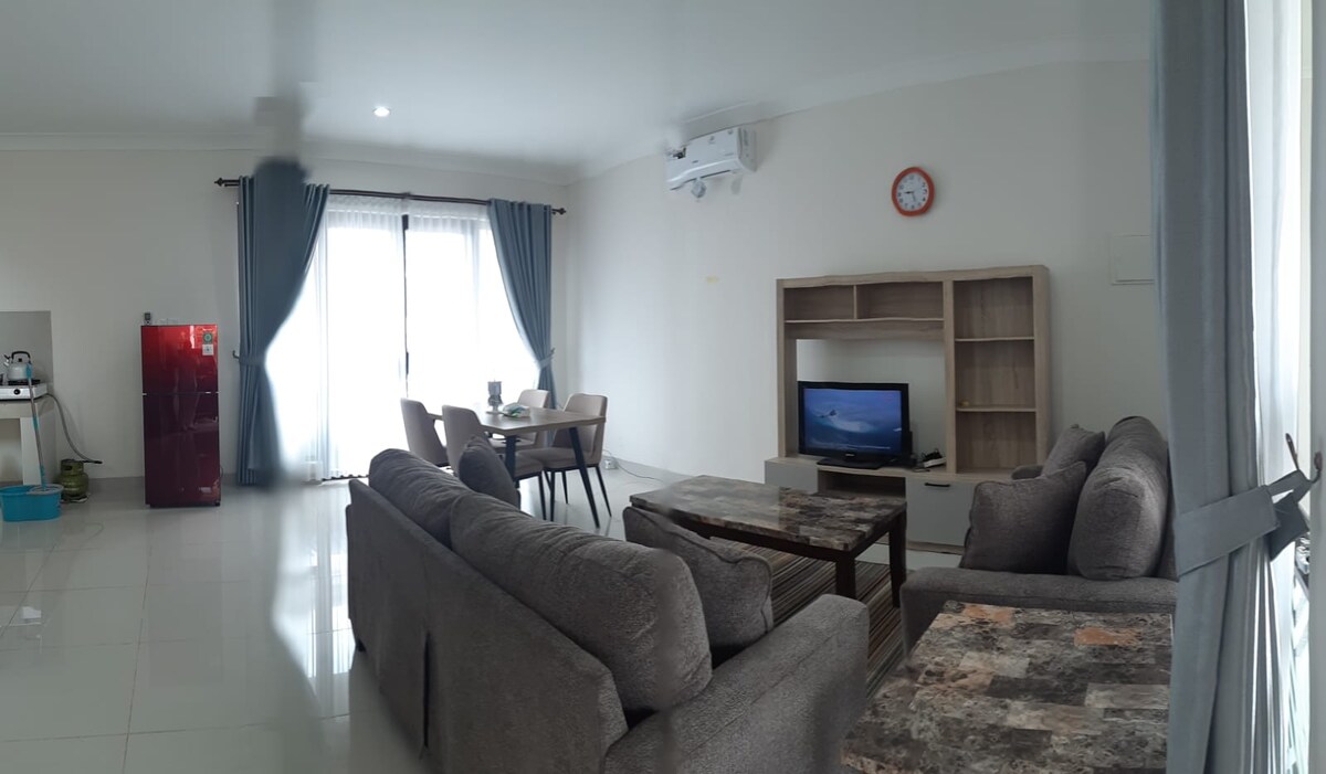 Stay in our spacious and modern house during your holidays. Great view and luxurious surrounding in a quiet housing complex. This is an entire house & private, but no party & loud music 2nd floor: all 3 bedrooms (with balcony); 1st floor: living room (with sofabed), pantry Clubhouse facilities (70m away-free of charge): swimming pool, fitness center, private cinema, etc. Very close to Telkom Univ. & Oetomo Hospital Breakfast & meals: Wellgrow cafe, Indomaret, McD & Starbuck open 24 hours