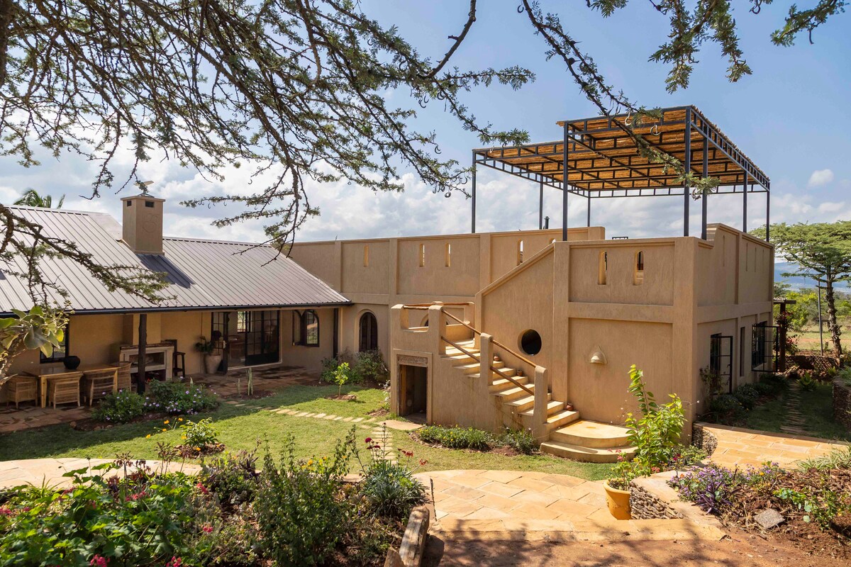 The cottage is situated on a farm in Laikipia, 32km from Nanyuki. It is near Borana and Ngare Ndare with stunning panoramic views of Mt. Kenya. It has large terraces providing comfy outdoor lounge areas. The farm is rich in bird species. Perfect getaway to relax in a beautiful landscape with a wild feel. It is a sustainable home designed to minimize your footprint on the environment with solar panels and rain water collection. Our cottage won the 2023 Airbnb Africa Award for Sustainability.