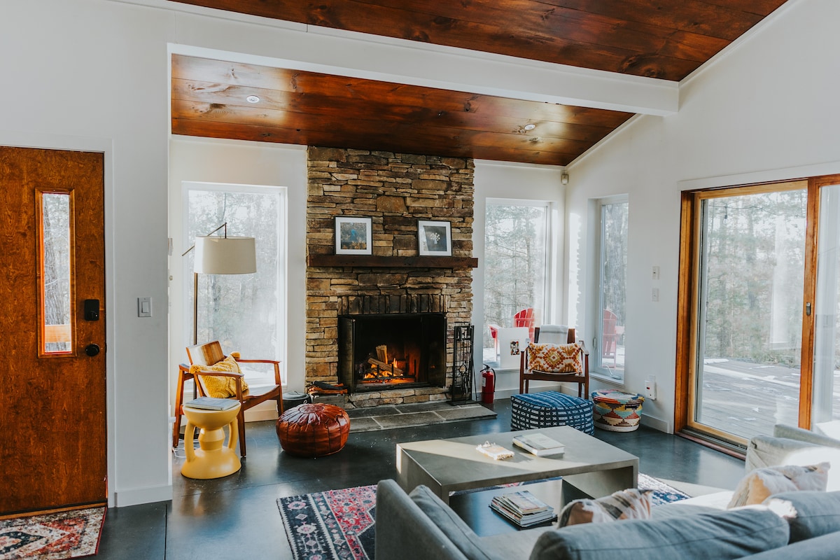 Được xây dựng bằng tay vào những năm 70, ngôi nhà gỗ độc đáo này đã được khôi phục một cách đáng yêu với phong cách. Nằm trên một khúc cua rộng lớn của Delaware, Broad Arrows cung cấp tầm nhìn vô song và hòa bình trong tự nhiên bất kể mùa nào. Vào mùa hè nướng trên sàn, bơi lội, xuồng hoặc cá bay. Vào buổi tối, hãy tận hưởng hoàng hôn trên sông hoặc tận hưởng phòng xông hơi kiểu Phần Lan của chúng tôi, sau đó là ngâm mình trong dòng sông. Vào mùa thu và mùa đông, hãy tận hưởng nhiều con đường mòn đi bộ đường dài hoặc trượt tuyết địa phương. Một nơi thực sự đáng chú ý để dành thời gian và kết nối lại.