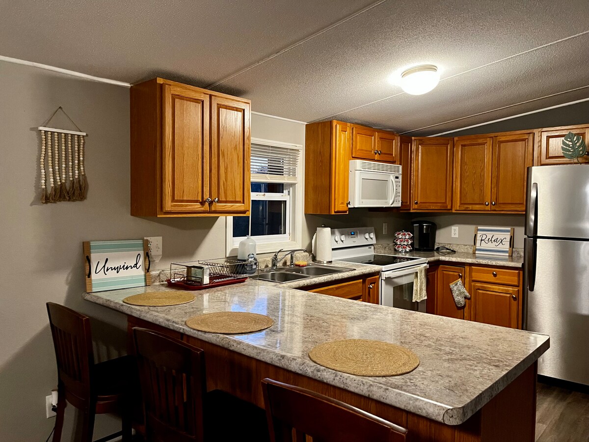 Xin chào, xin chào, chào mừng bạn! Chúng tôi mời bạn thư giãn tại địa điểm nghỉ dưỡng độc đáo và yên tĩnh này. Bếp có đầy đủ đồ dùng, bồn tắm nước nóng đã sẵn sàng để sử dụng, và khu vực địa phương tự hào có nhiều nhà máy rượu vang, công viên tiểu bang để đi bộ đường dài và cảnh quan đẹp. Cabin rộng rãi này có giường King thoải mái, TV 55inch phía trên lò sưởi ga và gần đây đã được cải tạo từ trên xuống dưới! Boong sau rộng rãi có bồn tắm nước nóng lớn chỉ cách cửa sau vài bước chân, móc cho áo choàng vải sân thượng được cung cấp và vỉ nướng Weber.