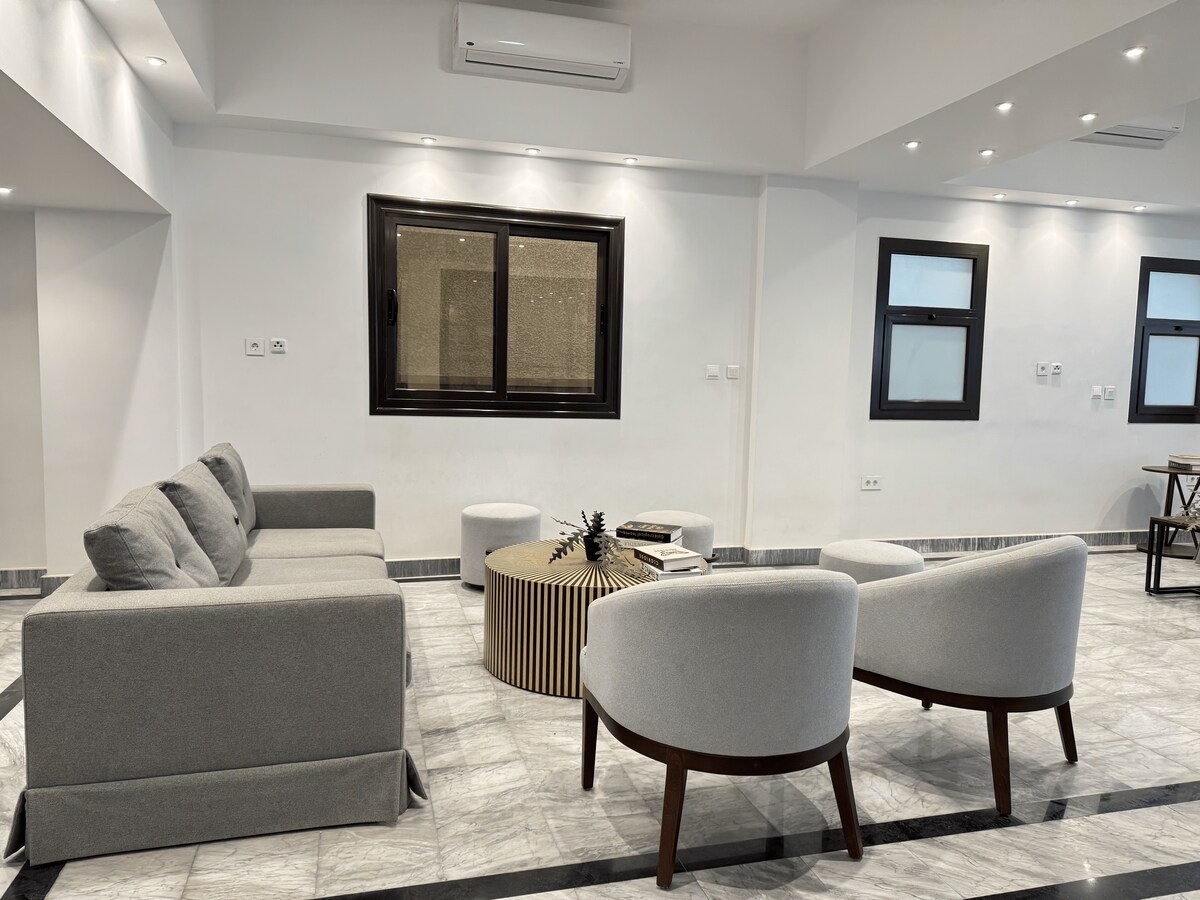 Welcome to your serene getaway in the heart of New Cairo's Fifth Settlement, a vibrant and upscale neighborhood known for its modern infrastructure and lush greenery. This beautifully designed space is perfect for travelers seeking both comfort and convenience, whether you're here for business, leisure, or a family vacation, Situated just minutes from key attractions and amenities, our Airbnb offers easy access to major roadways, allowing you to explore the wonders of Cairo with comfort and ease