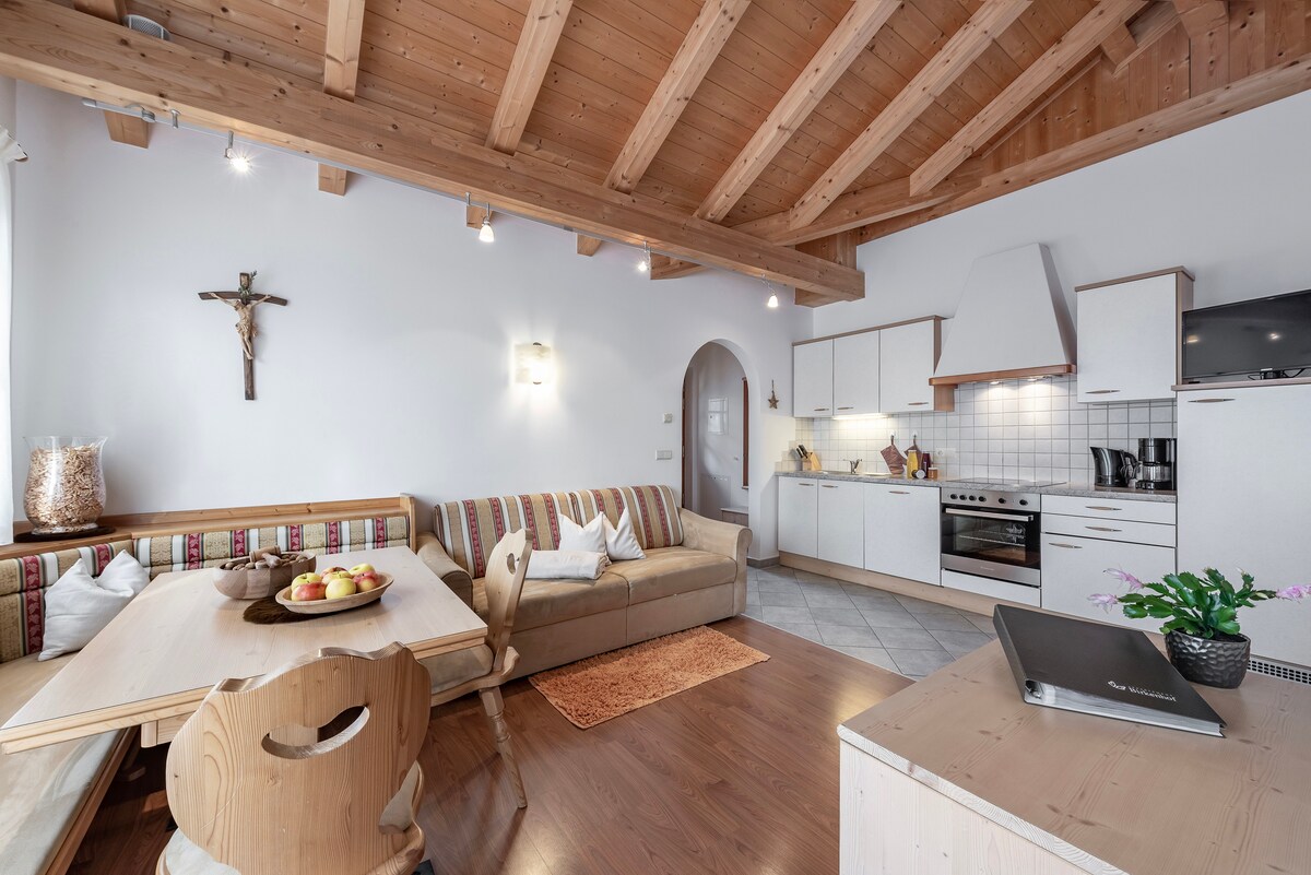 The apartment 'Melisse' is located near the farm “Thalerhof'' in Feldthurns (Velturno) and boasts a view of the mountains. The charming apartment consists of a spacious, light-flooded living/kitchen area, 2 bedrooms as well as one bathroom and can therefore accommodate 4 people. Additional amenities include Wi-Fi, satellite TV and a highchair. The apartment boasts 2 private balconies where you can start your day with a cup of coffee while you enjoy the view.