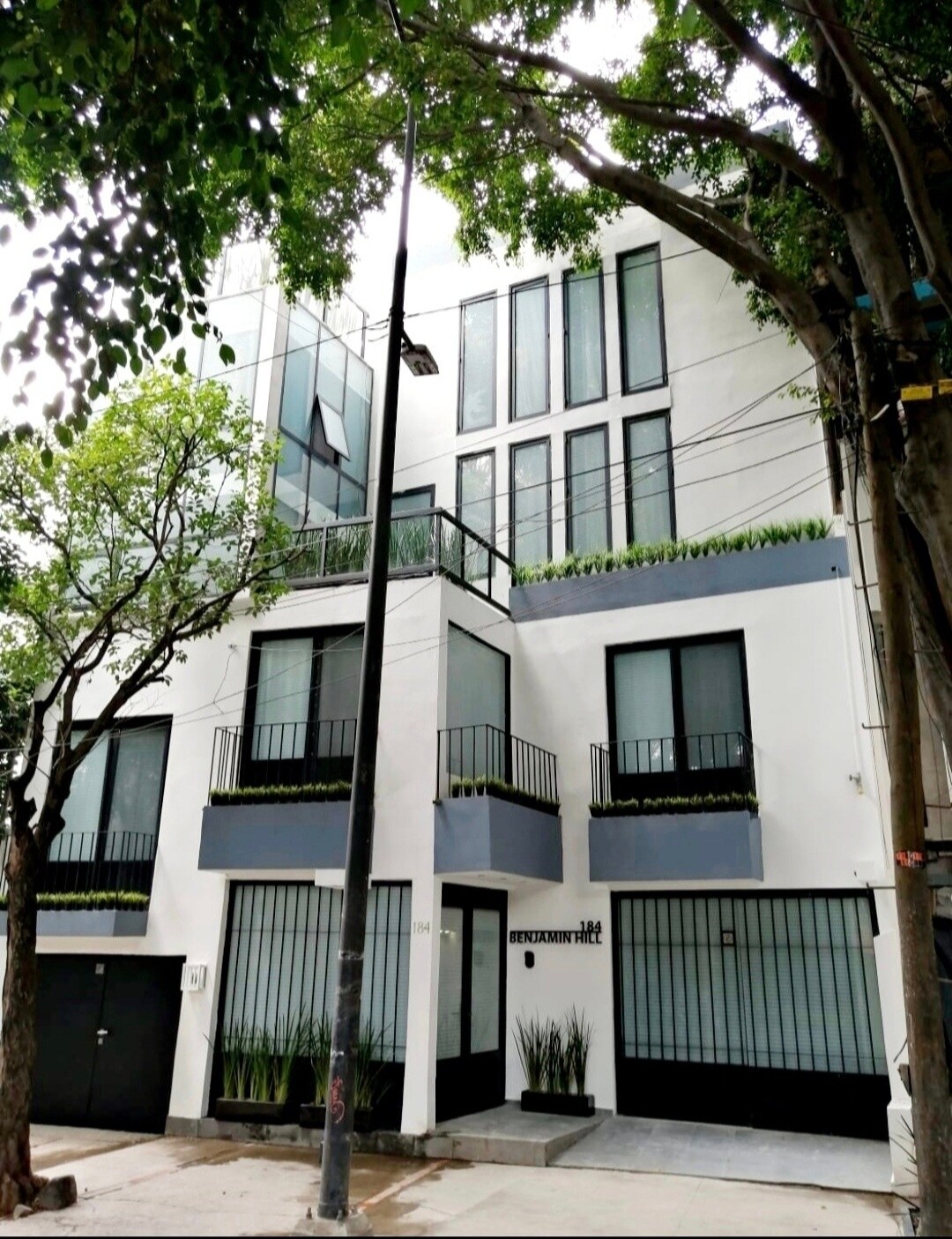 This one of a kind and cozy pent-house is located inside one of the most emblematic developments built in La Condesa neighborhood. Its architecture is a contemporary version of Art Deco. A style that defines La Condesa. It is located in a beautiful, tree-lined area. The atmosphere is very family-oriented, with young and vibrant people. The surroundings invite us to step out, walk, relax and discover new experiences.