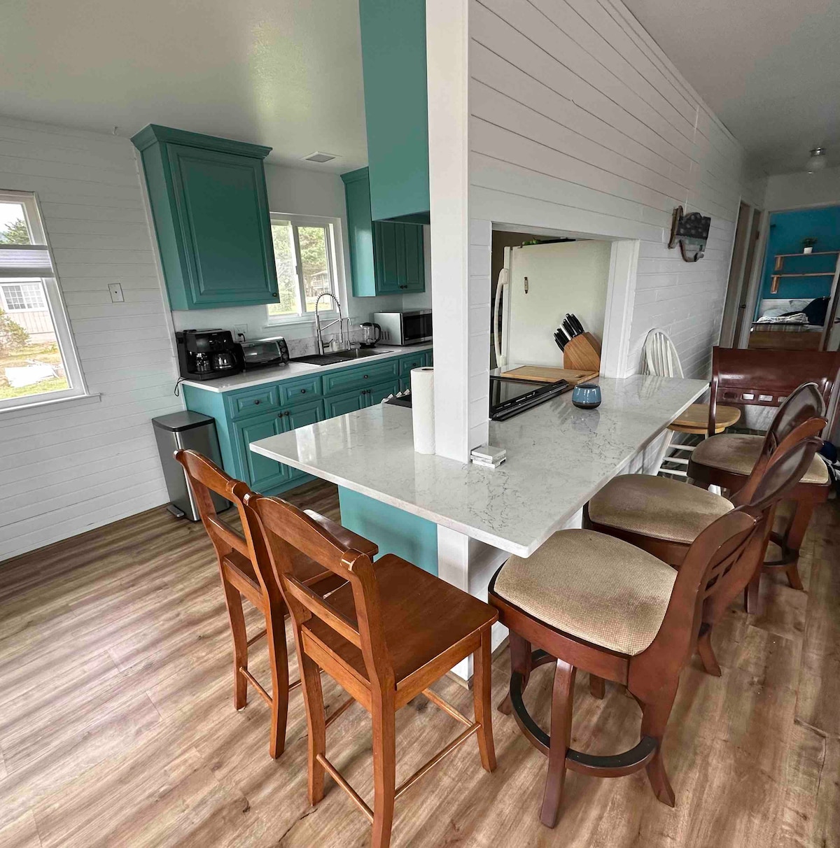 Nhà nghỉ thôn dã yên bình của chúng tôi nép mình giữa những khu rừng đỏ, cách Bờ biển Mendocino vài dặm. Trần nhà và giếng trời cao làm cho không gian này cảm thấy rộng rãi, mang đến ánh sáng tự nhiên và tầm nhìn ra những tán cây hùng vĩ. Cộng đồng xung quanh rất đặc biệt, với nhiều cư dân đã sống ở đây trong nhiều thập kỷ, chăm sóc nhà của họ. Trên đường vào, bạn có thể thấy gia súc, ngựa, lợn và gà. Hươu, chó sói, cáo, sư tử núi, cú, diều hâu, kền và gấu cũng thường xuyên đến khu vực này.