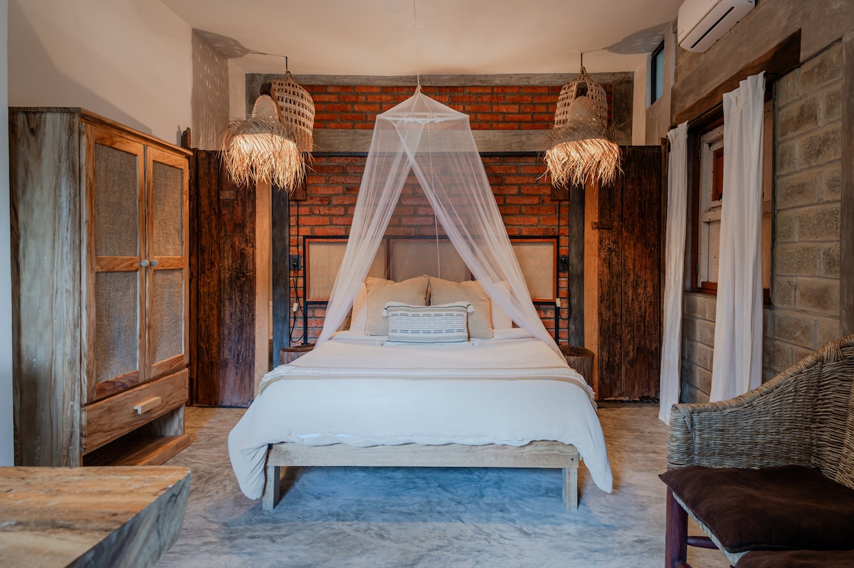 LÒ XO MỞ MẶT MÔI TRUYỀN THỐNG Tầng lửng 3; tầm nhìn tuyệt vời; Không có điều hòa hoặc cửa lưới chống côn trùng; rừng nhiệt đới. Cách bãi biển rộng yên tĩnh 2 phút đi bộ. Ghế/ô bãi biển, Wifi, người giúp việc, két an toàn, bể ngâm bể sục chung, camera an ninh, LR, quầy bar, bếp nhỏ, bồn tắm/vòi sen, tầng trên thứ 2, mèo thường trú. Phòng có giường queen. Màn chống muỗi, quạt, gió biển, thuốc xịt diệt côn trùng. 6 phút đi bộ ra bãi biển hoặc ra đường để đến các nhà hàng. Nếu nhạy cảm với côn trùng, hãy cân nhắc các chỗ ở khác tại đây có điều hòa không khí. 2 bậc thang bên ngoài để lên/xuống từ đường phố.