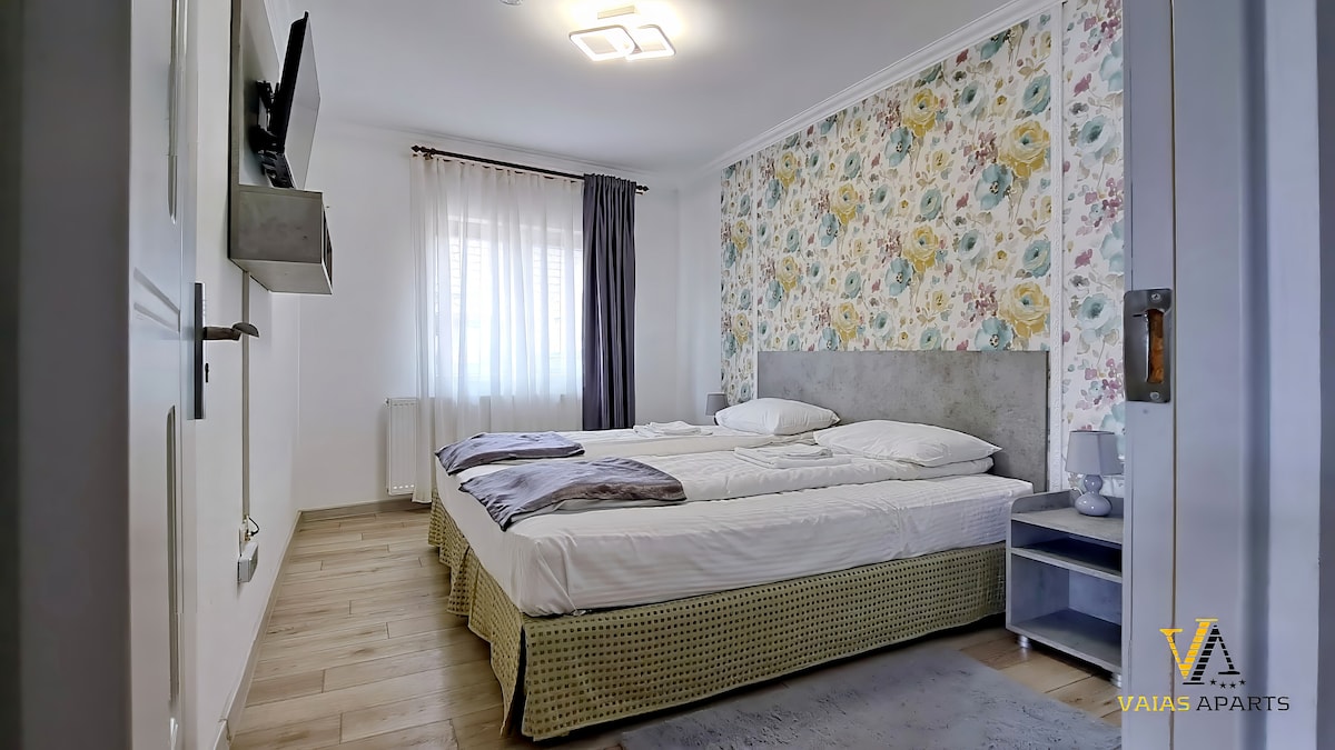 Bine ai venit într-un apartament luminos și confortabil din Tîrgu Neamț, parte din Vila Vaias Aparts, situat într-o zonă liniștită și sigură, aproape de Cetatea Neamțului. Spațiul îmbină confortul modern cu o atmosferă relaxantă.