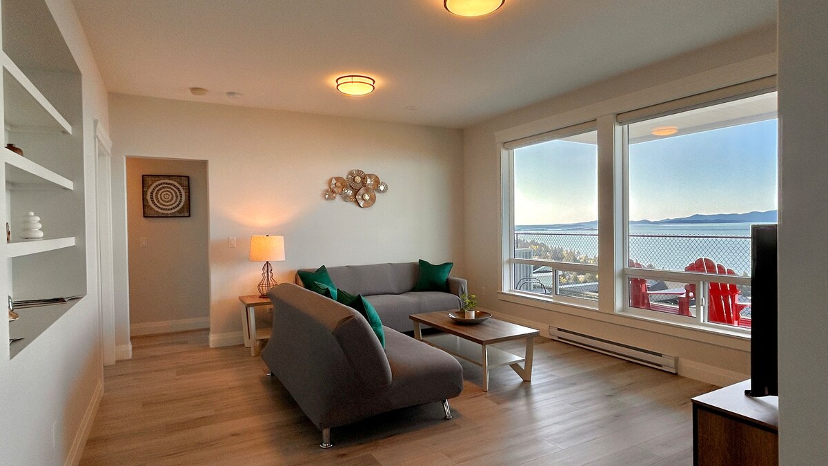 Phòng của chúng tôi là một nơi nghỉ dưỡng một phòng ngủ tuyệt đẹp, mới được xây dựng, có trần 9’và không gian 810 SF hào phóng. Nó có TV thông minh 58"và bếp được trang bị đầy đủ tiện nghi, đảm bảo lối sống chất lượng cao trong chuyến đi của bạn. Tận hưởng bình minh và hoàng hôn ngoạn mục từ ban công riêng của bạn, với tầm nhìn tuyệt vời ra đại dương và núi non qua eo biển Georgia. Tọa lạc tại vị trí thuận tiện, căn hộ của chúng tôi là một cơ sở lý tưởng để khám phá sức hấp dẫn của Đảo Vancouver.