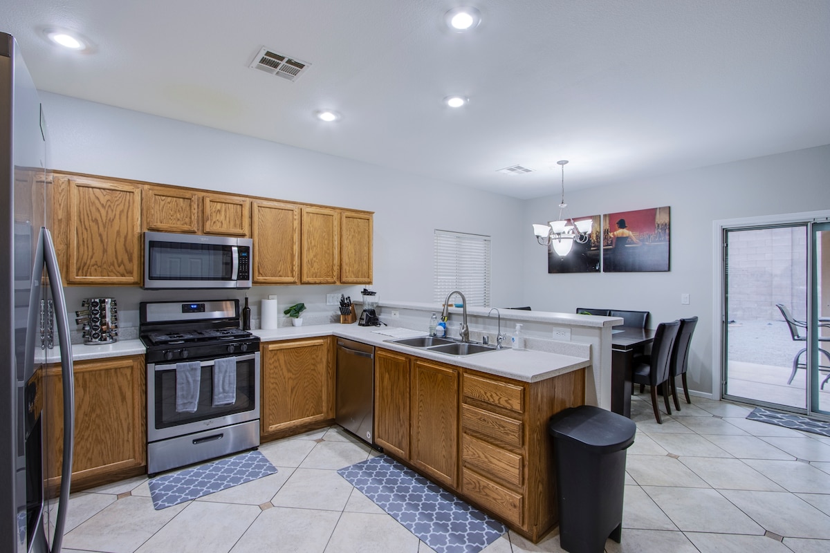 Chào mừng bạn đến với ngôi nhà thứ hai của bạn ở Las Vegas! * Khu nghỉ dưỡng 3 phòng ngủ mới được tân trang và đầy đủ tiện nghi *Hoàn hảo cho các gia đình, khách đi công tác, nhóm và các kỳ nghỉ cuối tuần. *Nằm trong một khu phố yên tĩnh, an toàn chỉ cách Strip vài phút *Loa được lắp đặt trong phòng khách * Hố đốt lửa tích hợp bên trong ống khói