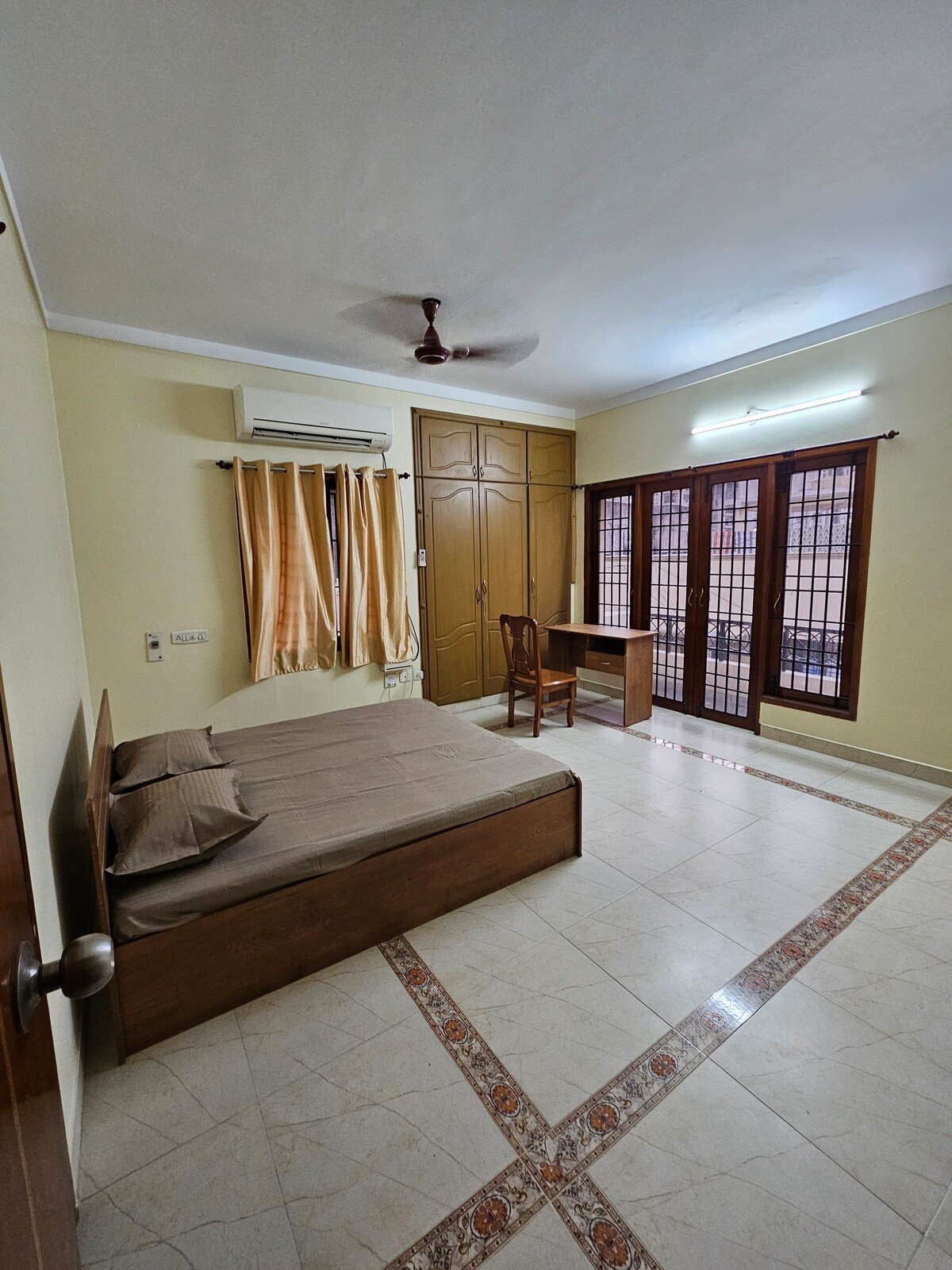 Đưa cả gia đình đến nơi tuyệt vời này với rất nhiều không gian ở Tầng trệt. Tối đa 5 người có thể ngủ thoải mái trong Phòng với 2 điều hòa nhiệt độ và 1 phòng không điều hòa có bồn tắm đính kèm. Phòng sẽ được phân bổ dựa trên số lượng khách. Đề cập đến số lượng khách ở lại. Vui lòng yêu cầu số lượng phòng cần thiết . Nơi ăn uống có 2 ghế và Phòng khách có 2 ghế. TV và bàn làm việc có WIFI miễn phí Cổng vào để mở khu vực lối đi phụ. Có bãi đỗ xe