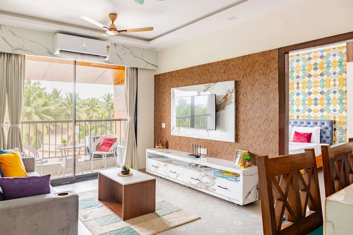 Luxury Garden-View 1BHK | Gần bãi biển Candolim