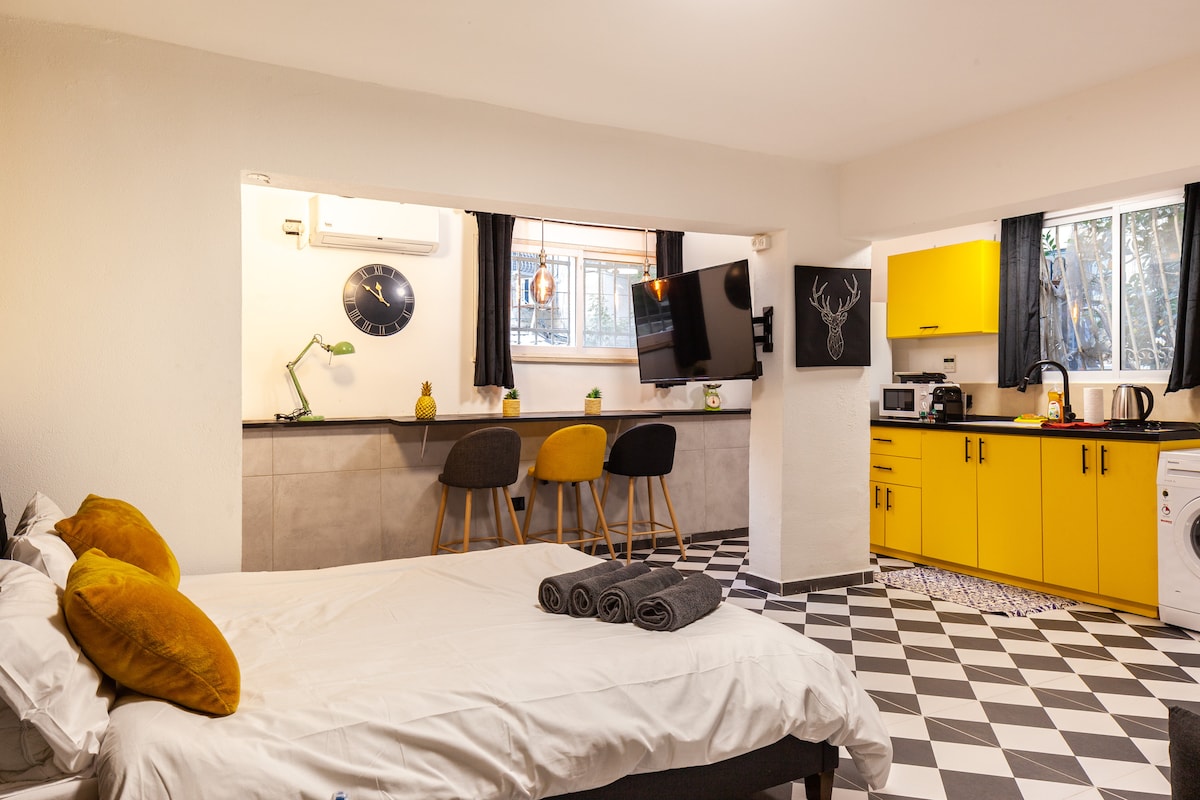 This modern, fully renovated studio is in an unbeatable location—just a few minutes’ walk from the beach. It’s the perfect blend of prime location and cozy comfort. The apt. is 350 meters from central beach, a short stroll to the vibrant Carmel Market, within walking distance of the artistic Neve Tzedek neighborhood, the charming Kerem HaTeimanim, and the lively Rothschild Boulevard. Everything you need is right at your doorstep. We provide everything you need for a perfect Tel Aviv vacation.