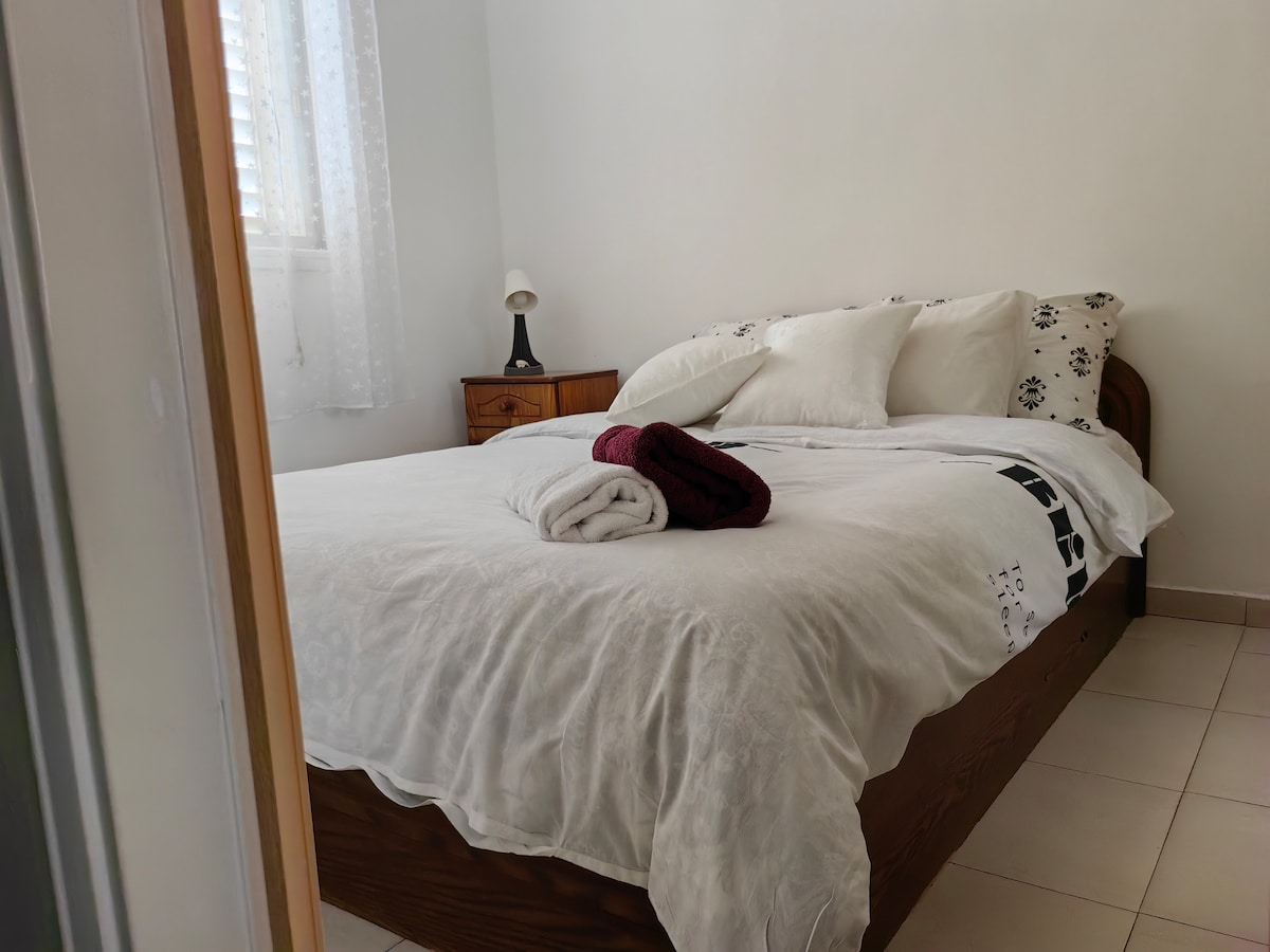 Новая, после ремонта квартира, на центральной улице города, не далеко от моря. Квартира укомплектована всем необходимым для отдыха. Рядом есть множество продуктовых магазинов, овощные лавки и кафе. Важно: 1. парковочное место необходимо бронировать заранее (бесплатно). 2. электричество оплачивается наличными на месте- 5 дол США/сутки. 3. граждане Израиля обязаны оплатить НДС, в размере 18% 4. детская кроватка заказывается заранее (10 дол США/сутки).