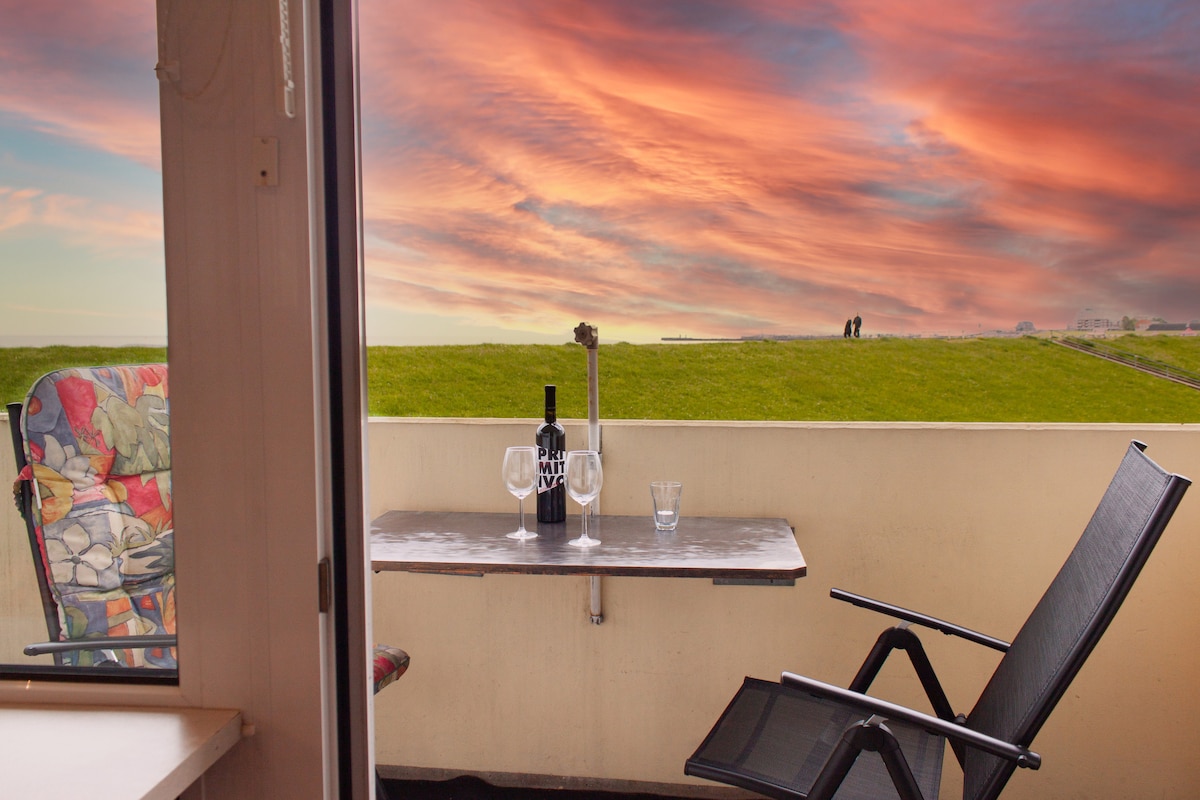 Perfekt für Remote-Work oder ein gemütlicher Pärchen-Urlaub. Hunde WILLKOMMEN! Ruhige & moderne Dachgeschoss-Ferienwohnung mit Meerblick (oder je nach Tide mit einem wundervollen Wattblick) in Cuxhaven-Duhnen inkl. High Speed WLAN (perfekt für alle, die hier schöne Netflix Abende (Smart TV) genießen oder von hier arbeiten wollen). Nur 150m trennen euch vom Strand, dem Watt und dem Wasser und genauso nah dran befinden sich tollen Restaurants, eine Bäckerei & Eisläden.
