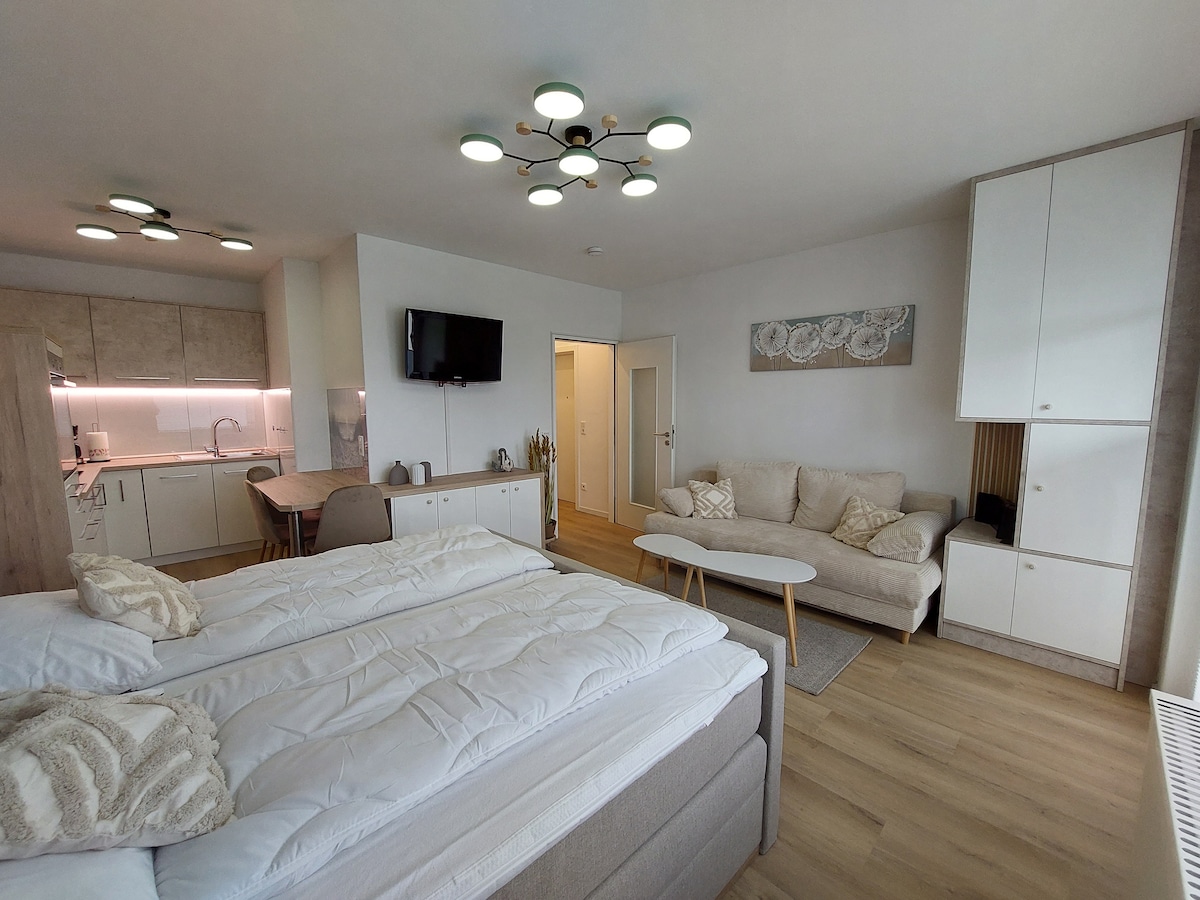 Design-Apartment mit Balkon, Strandkorb & Spa