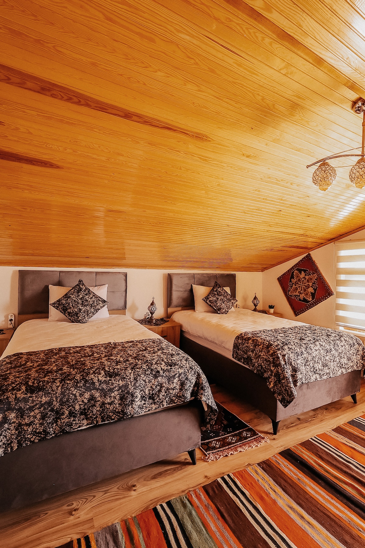 Lấy cảm hứng từ một tình yêu dành cho phong cách Thổ Nhĩ Kỳ và sự dễ dàng của thiết kế hiện đại, phần trên của chúng tôi căn hộ bằng đá nhẹ nhàng và thoáng mát với ban công juliette, phòng ngủ khép kín cỡ queen, phòng khách rộng rãi với các điểm nhấn, cộng với ghế sofa gấp và một ngày siêu thoải mái/giường đơn lý tưởng để thư giãn giữa những chiếc gối kilim. Tầng trên là một nhà bếp/khu vực ăn tối hoàn toàn khép kín, nhà vệ sinh bổ sung và một sân thượng ngập tràn. Hoàn hảo cho việc ăn uống ngoài trời và hòa mình vào bầu không khí làng quê sau khi thưởng thức Cappadocia.