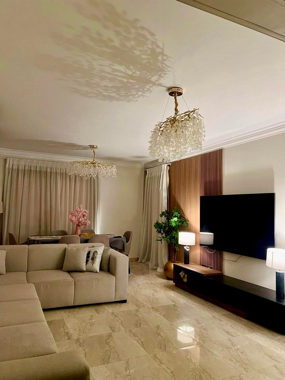 ✨ Trải nghiệm cuộc sống sang trọng ngay trung tâm New Cairo! Căn hộ 2 phòng ngủ thanh lịch này kết hợp sự thoải mái hiện đại với thiết kế phong cách. Khu vực tiếp khách có thiết kế mở với ghế tựa lưng êm ái, bếp đầy đủ tiện nghi và khu vực ăn uống đầy nắng, hoàn hảo cho các bữa ăn chung. Cả hai phòng ngủ chính đều có giường cỡ king, không gian chứa đồ rộng rãi và những điểm nhấn ấm cúng cho những đêm nghỉ ngơi. Bước ra sân thượng vườn riêng của bạn với tầm nhìn ra thành phố, một ốc đảo để tập yoga, đọc sách hoặc cà phê buổi sáng.