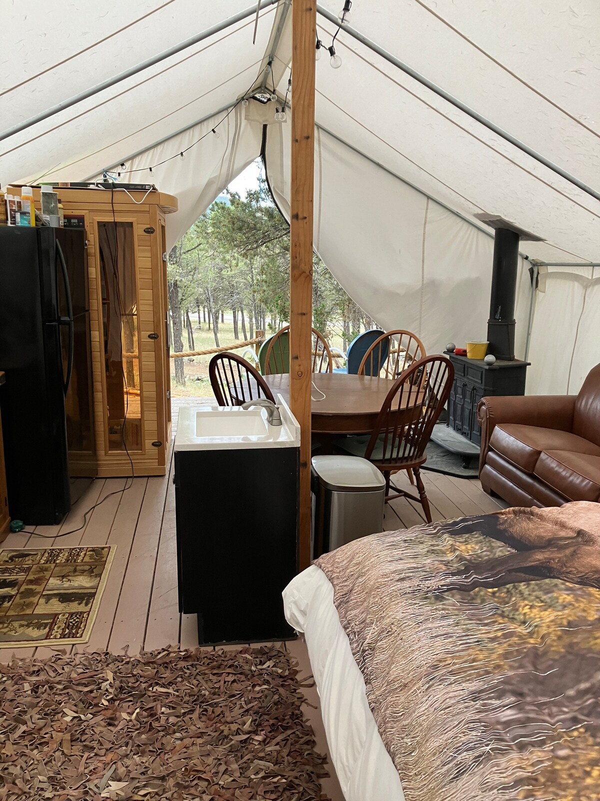 Cắm trại sang trọng ở dãy núi Jemez xinh đẹp. Cách Làng Jemez Springs, Xưởng rượu vang Ponderosa và Suối nước nóng một quãng đường ngắn. Diện tích 19 mẫu Anh với tầm nhìn tuyệt vời. Ảnh không thể diễn tả hết được! Thư giãn trong một chiếc lều vải bạt dài 14/16ft được trang trí đẹp mắt với đầy đủ tiện nghi tại nhà. Giường cỡ queen, giường kích thước tiêu chuẩn, ga trải giường chất lượng, sàn gỗ cứng và nội thất trang trí thoải mái khiến chỗ nghỉ glamping này mang lại cảm giác như một kỳ nghỉ thực sự! Đi bộ đường dài/Câu cá/Đường hầm/Tàn tích. Chúng tôi có bốn lều cho thuê, cho thuê nhiều hơn một lều cho các nhóm hoặc gia đình đông người.