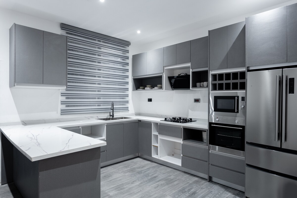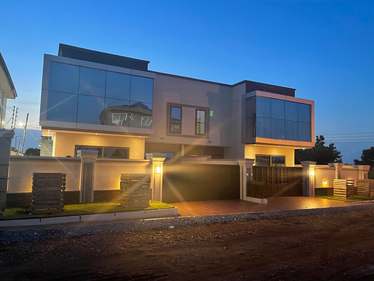 ☞ Private pool with lounge seating (3.5 ft. shallow end, 6.5 ft. deep end, 10x23 pool) 🏊 ☞ Starlink Wi-Fi (250+ Mbps) 🌐 ☞ 24/7 power (solar + backup generator) ⚡ ✭ Cozy King Size Beds (180x200 cm) 🛏️ ✭ Optional chauffeur & chef services 🚘👨🏾🍳 ✭ Daily Cleaning available 🧹 ☞ 3850 sq. ft home ☞ Smart TVs + premium Samsung 11.1.4 Surround Sound Bluetooth speakers 🎬 ☞ Parking (onsite, 4 cars) ☞ Washer + Dryer ☞ Fully equipped + stocked kitchen ☞ A/C 》25 - 30 mins to the airport