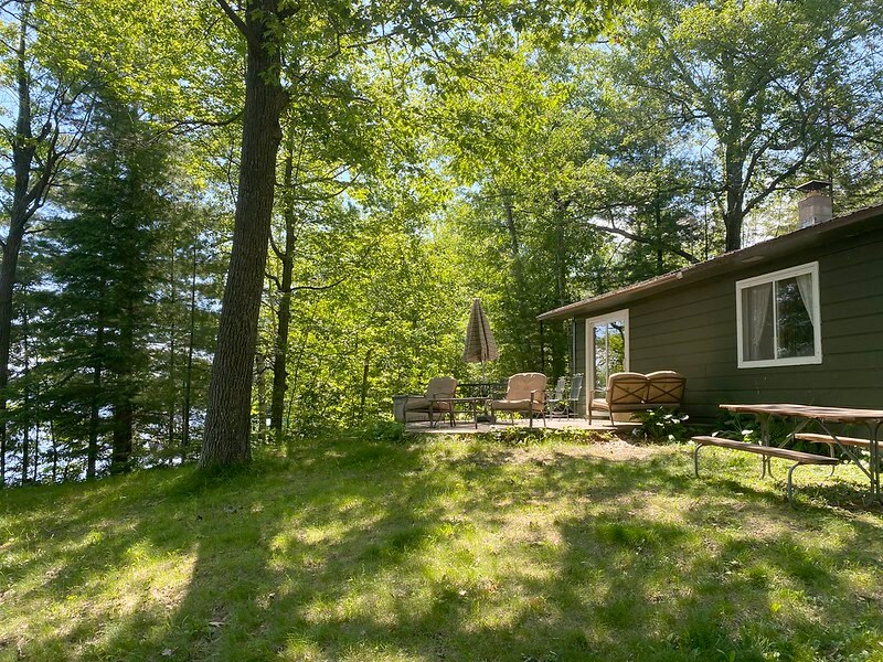 Gorgeous 1940's cabin renovated inside and out in 2018! Nestled in the Northwoods, this home has a full kitchen w/ all amenities, cable TV/Wifi, large deck w/ table & chairs, charcoal grill and fire pit! Surrounded by premier lakes with 4 nearby boat landings to both Lac Courte Oreilles and Grinstone. Seasonal view of Lac Courte Oreilles- but no water access granted with rental. Only 15 minutes to downtown Hayward or Stone Lake! Enjoy the pleasure of a home for the price of a hotel room!