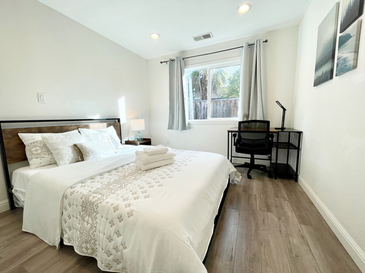 Welcome to the centrally located White Rose Annex!! The annex & yard were completely renovated in 2018! This is a luxurious and fully equipped studio unit that is 5 min to Hwy 880, within 30 min of all 3 major airports (SFO/OAK/SJC), 5-10 minutes from shopping, dining, movies, & Aqua Adventure Park, 15 min to Facebook & Tesla HQ, 20 min to Levi stadium & 30 min to Stanford, SJ convention center, & O coliseum. Perfect for solo business traveler, couples or small families!