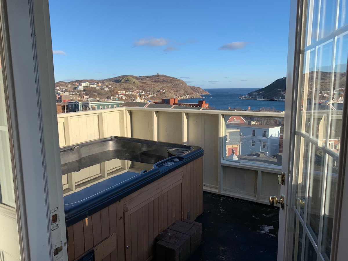 Căn hộ Penthouse 1 phòng ngủ tuyệt đẹp nằm ngay trung tâm thành phố St. John's với tầm nhìn toàn cảnh cảng St. John's. Bạn sẽ được tận hưởng bồn tắm nước nóng, phòng tắm nắng, phòng xông hơi, giường cỡ king, khăn trải giường, khăn tắm, TV 50 inch và bếp nhỏ được trang bị đầy đủ các loại ly bao gồm cả nhựa để có trải nghiệm bồn tắm nước nóng an toàn hơn. Chỗ đỗ xe ngoài đường chỉ dành cho một xe. Trong khoảng cách đi bộ từ công viên, quán rượu, nhà hàng, bảo tàng, phố George và các địa danh lịch sử khác